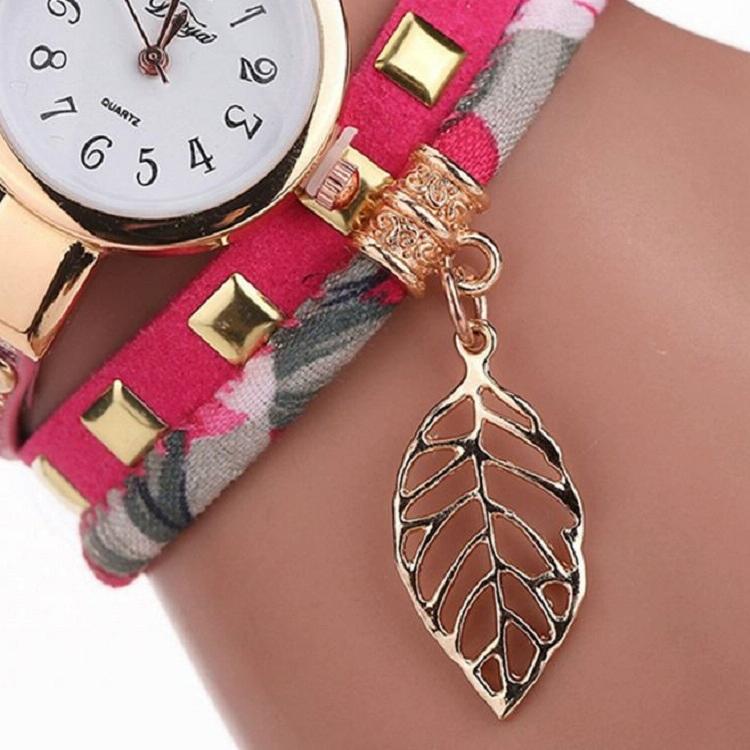 Leaf Pendant Quartz Bracelet Watch for Women – Red