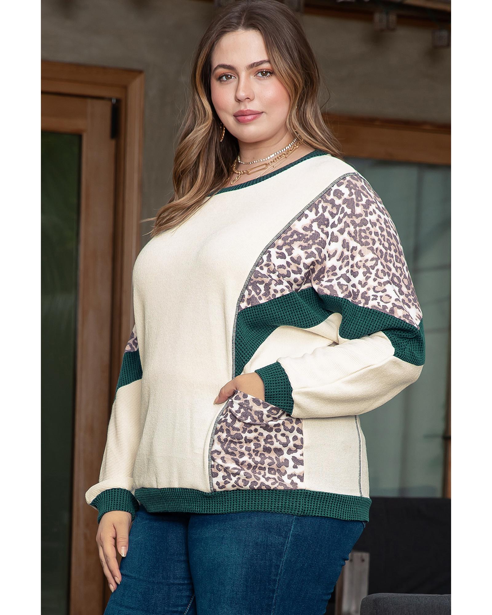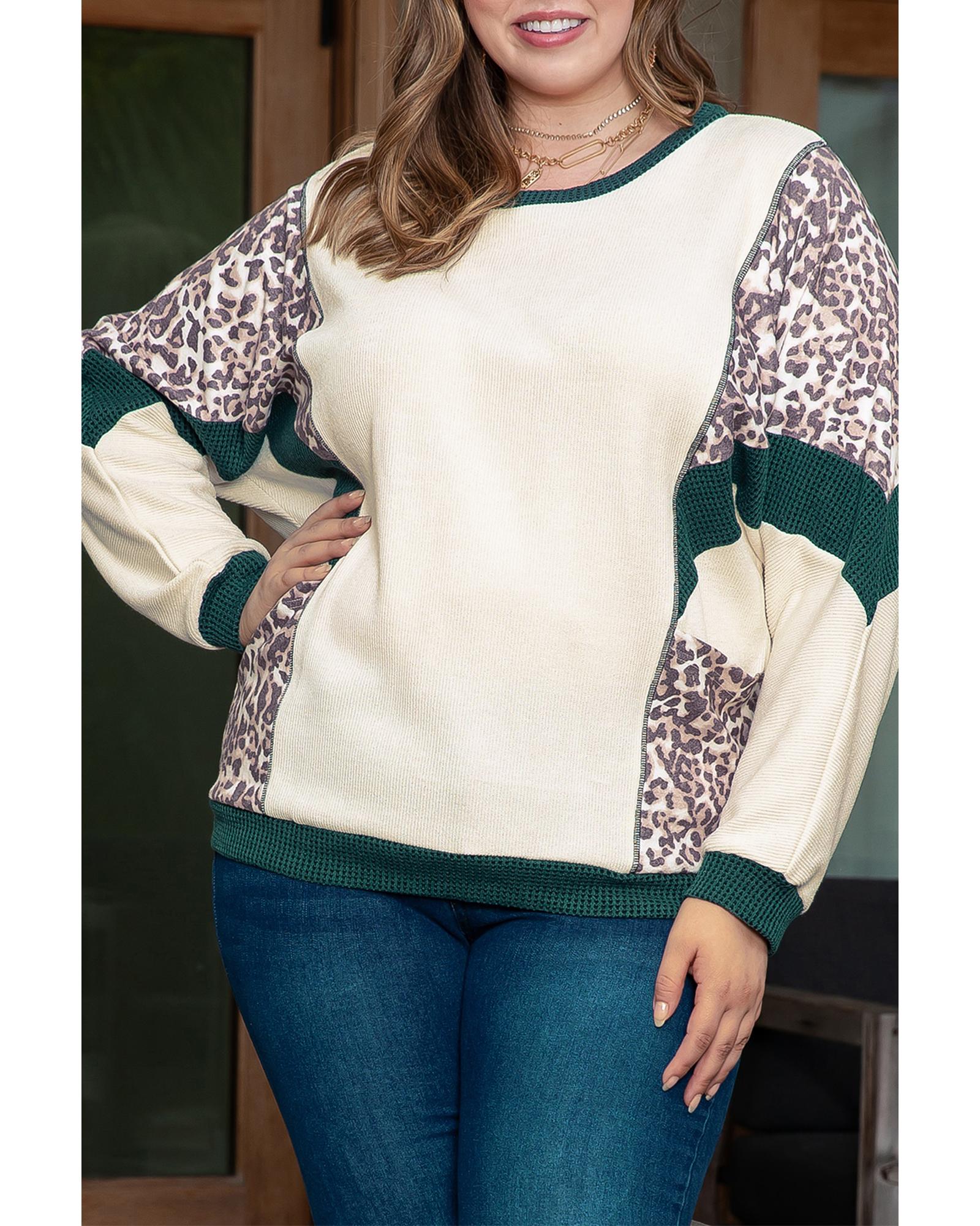 Leopard Colorblock Patchwork Dolman Sleeve Plus Size Top – 3X