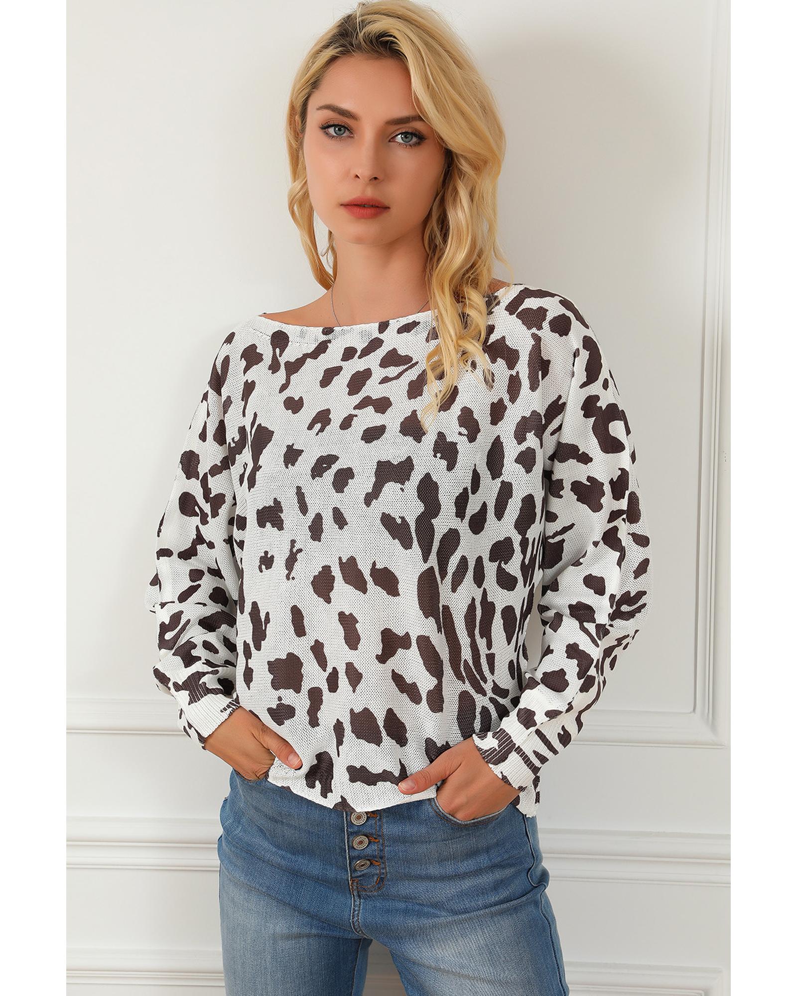 Slouchy Drop-shoulder Leopard Striped Colorblock Sweater - XL