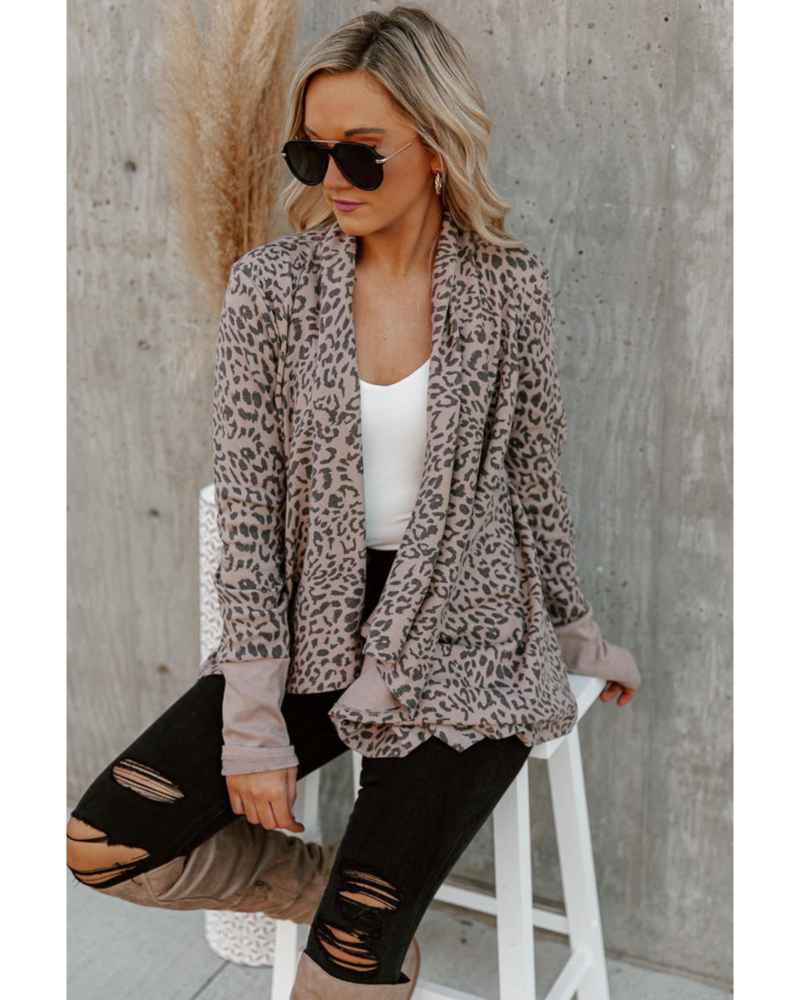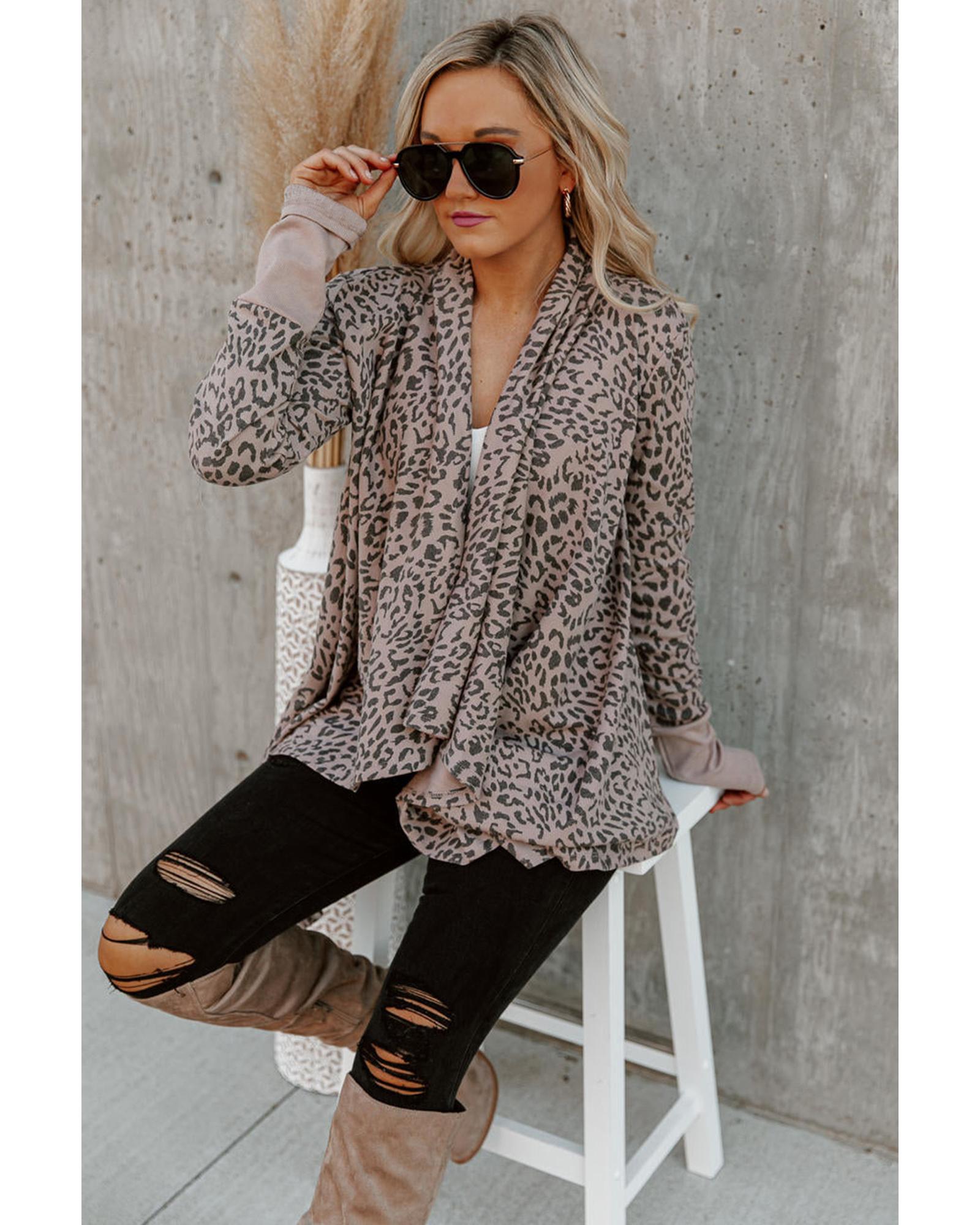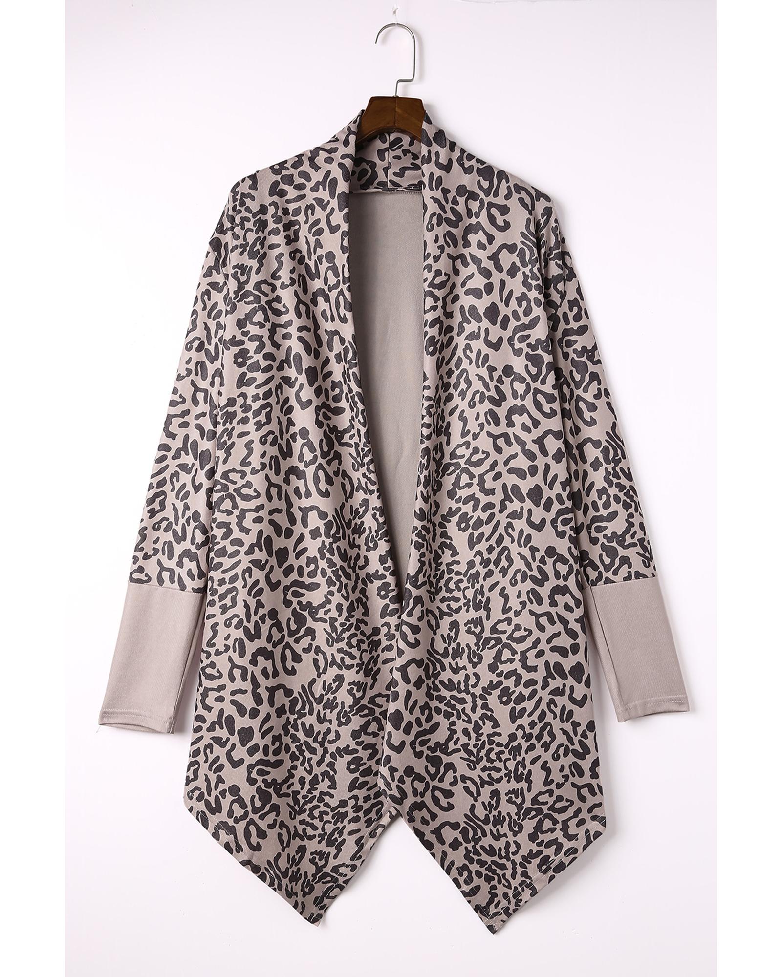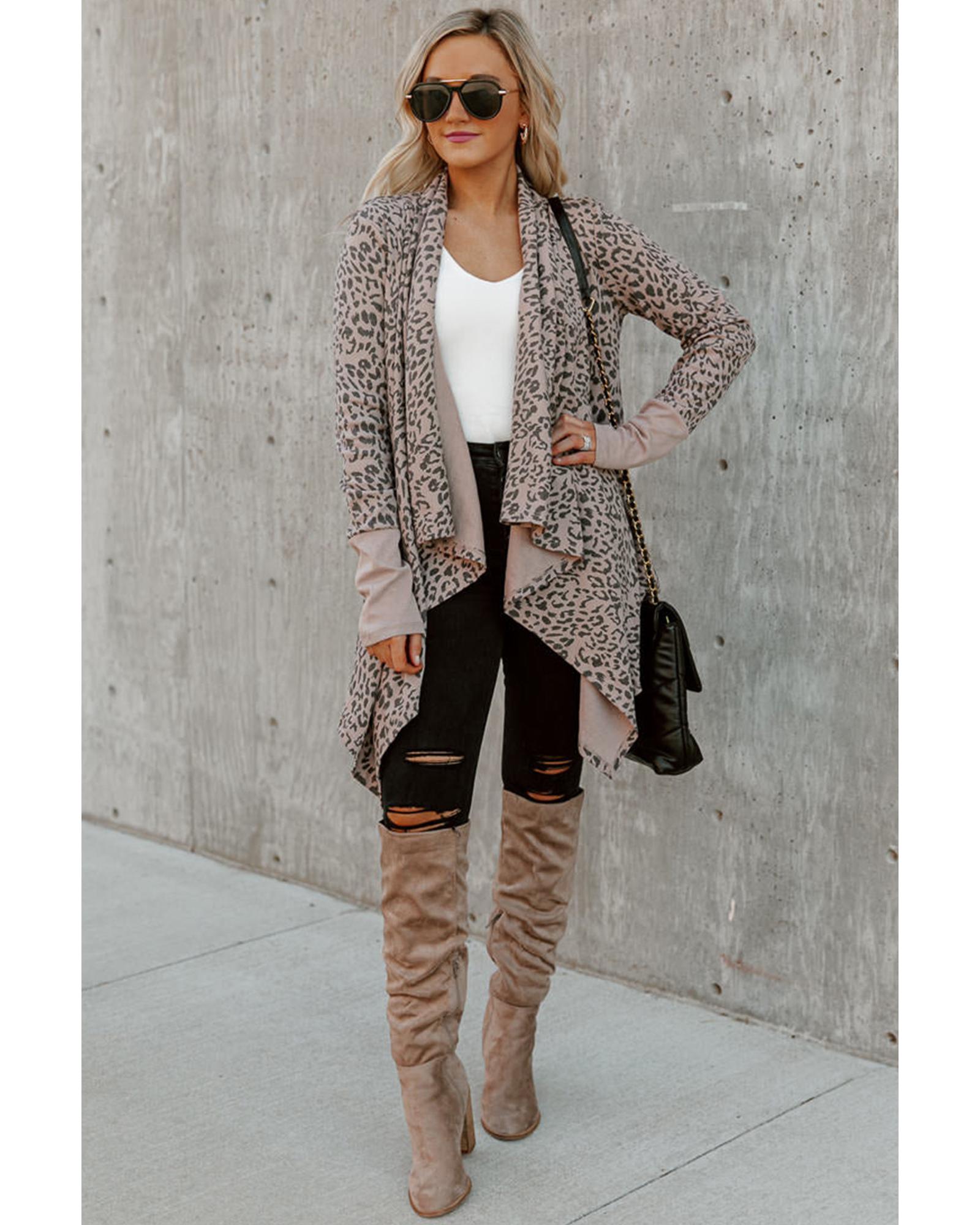 Bold leopard print Draped design Open front design Versatile styling with denim and knee - high boots Fast worldwide shipping