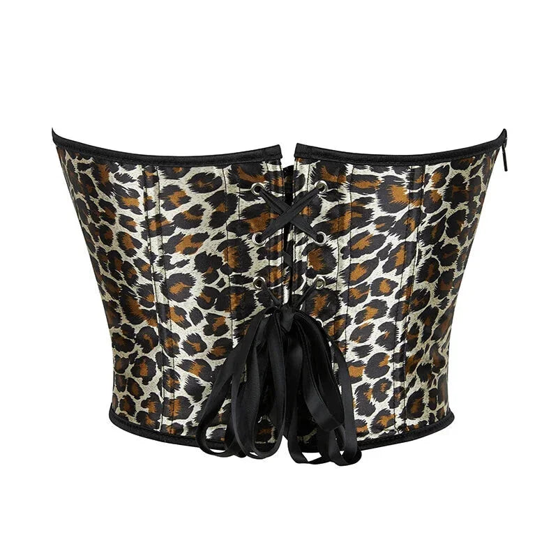 • 1 x Leopard Print Zip-Up Corset Fishbone Support Plus Size S-Xxl