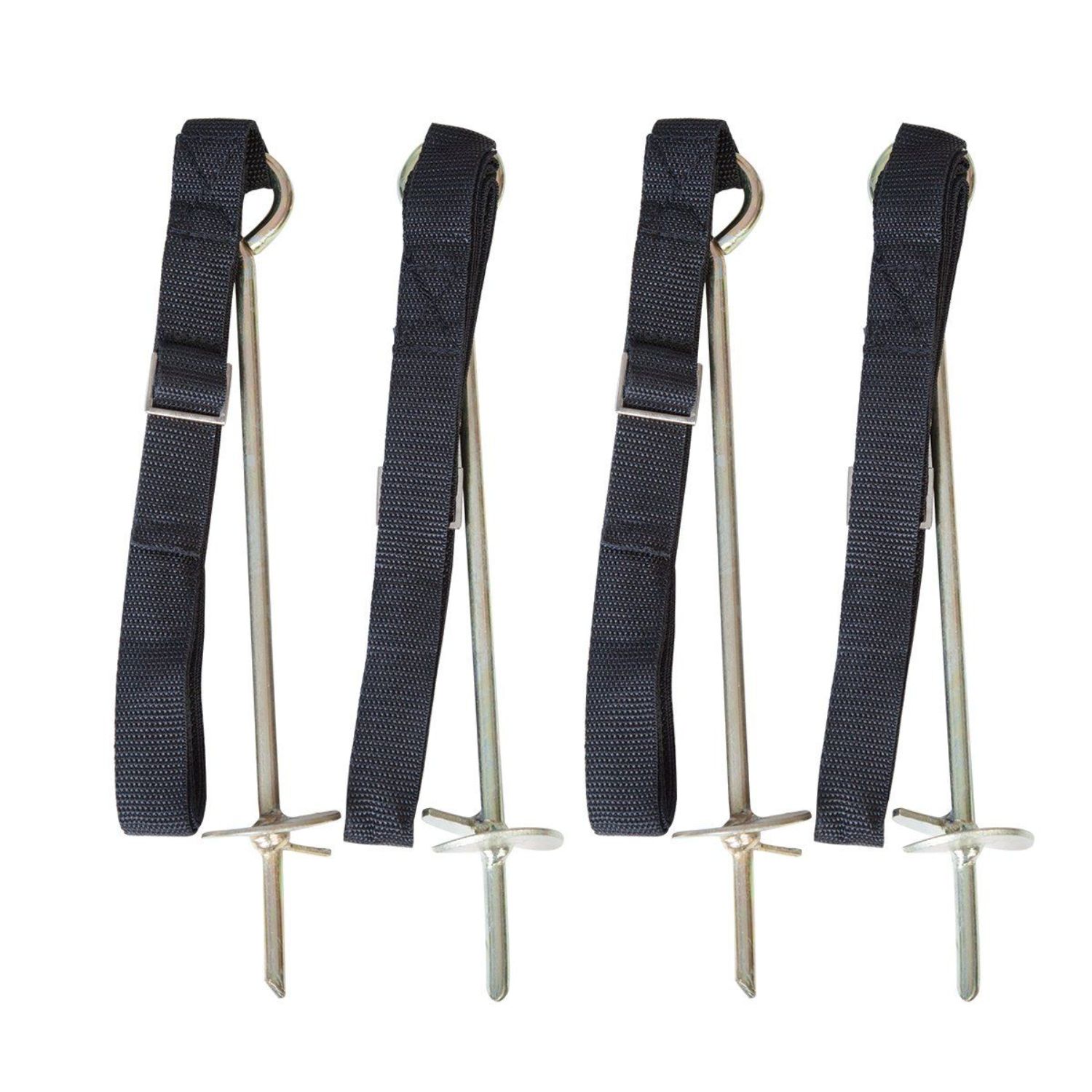 The anchor kit comes with 4 large industrial strength metal anchors and 4 heavy duty straps that is designed to minimize the effects of strong winds which may lead to flipping, damaging or moving your trampoline. It may also minimise the heavy shaking of trampoline legs and prolongs the life of your trampoline, which ultimately leads to a safer, a more sturdy and rigid trampoline.