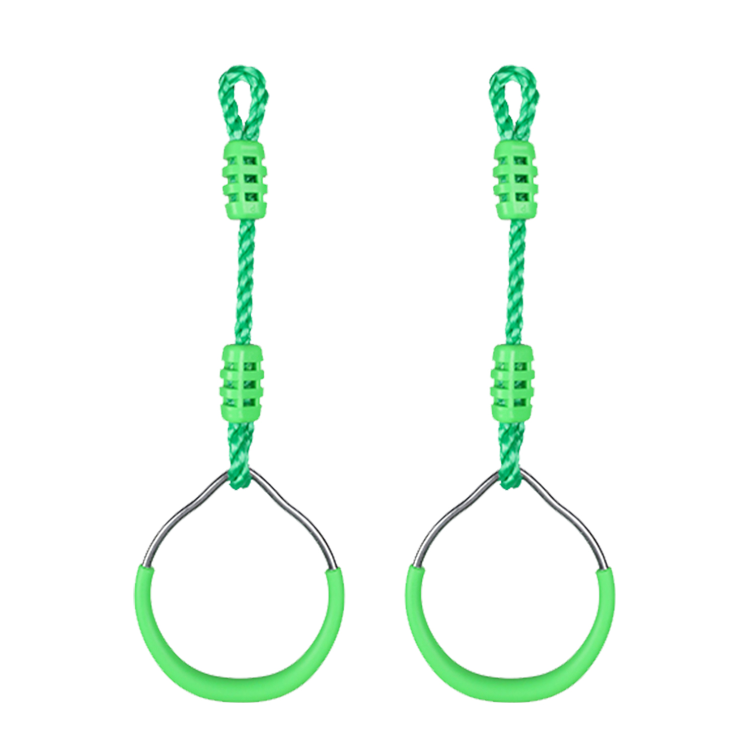 Includes: 2 x Swing Rings, 2 x Monkey Bars, 2 x Grip Knots, 1 x Plastic Ring, 8 x Adjustable Buckles, 8 x Carabiners, 2 x Tree Protectors.