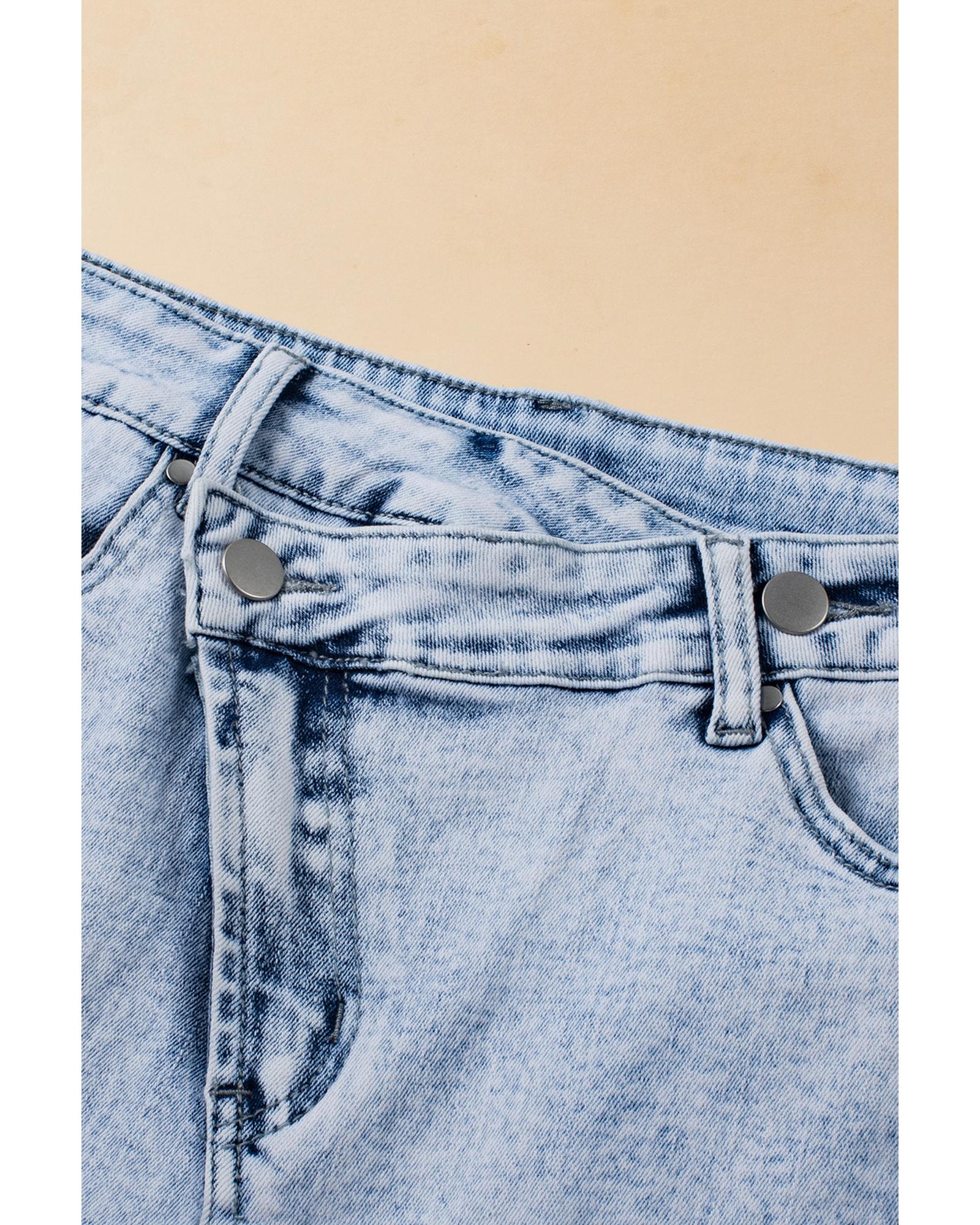Light Blue Acid Wash Crossed Raw Edge Denim Shorts – 12 US