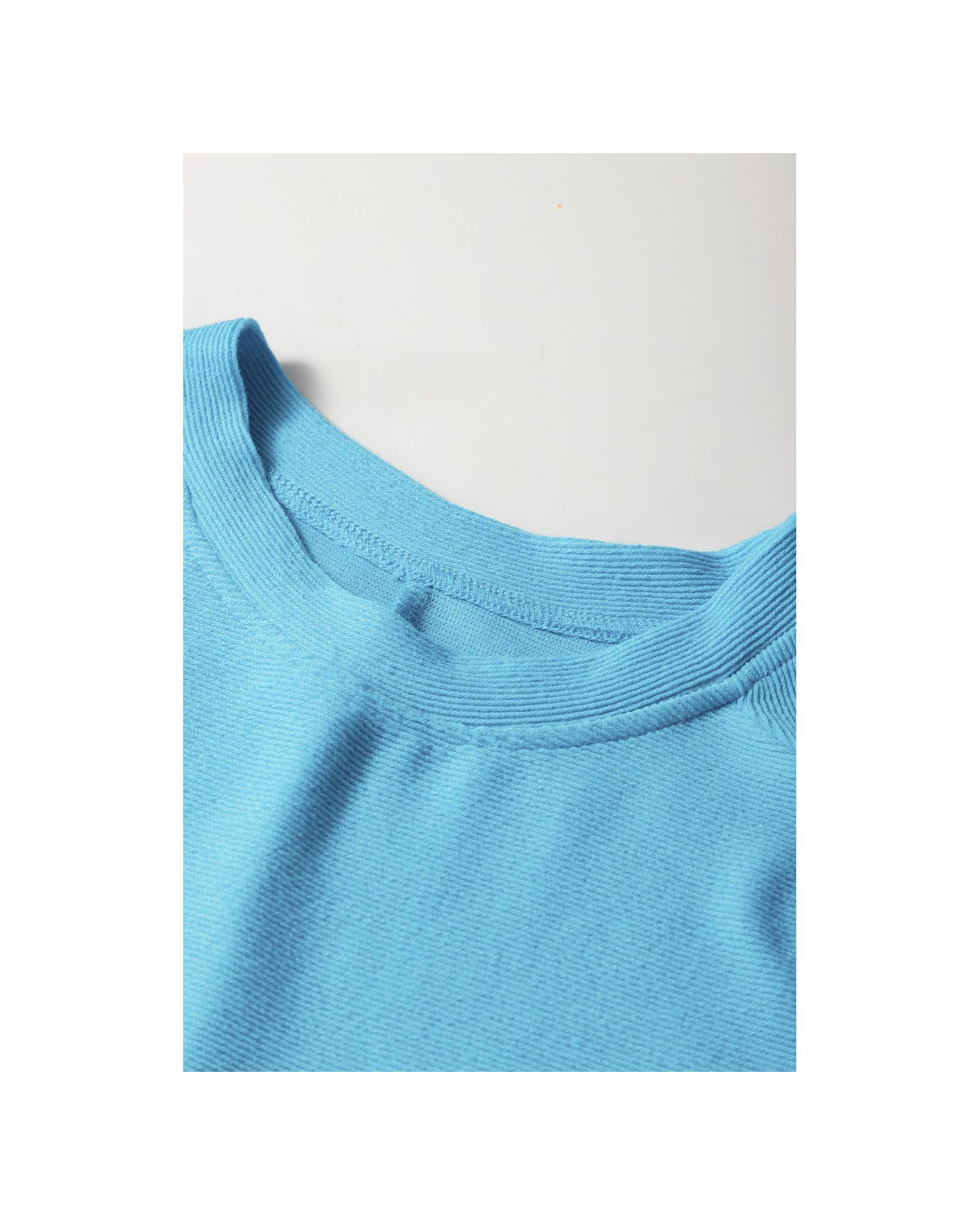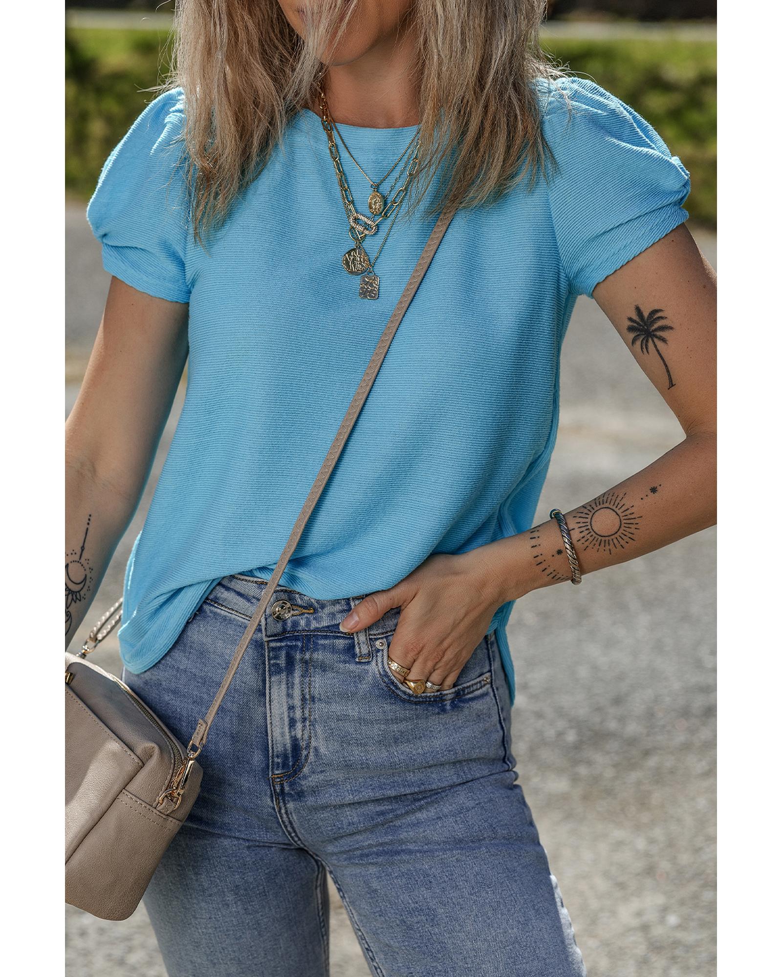 Light Blue Bubble Sleeve Solid Color Elegant T-Shirt – L