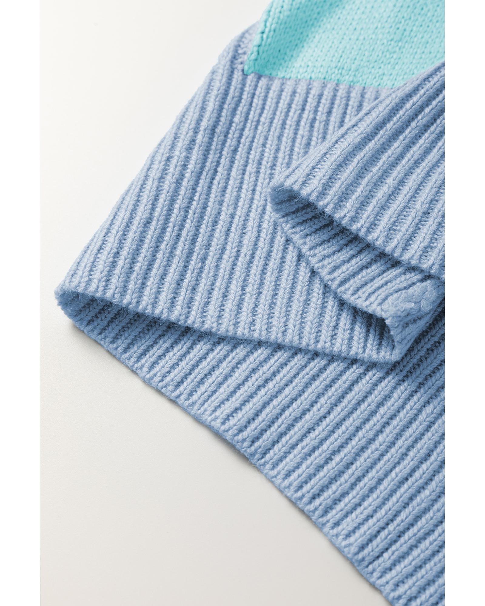 Light Blue Checkered Color Block Crew Neck Short Sleeve Sweater - M