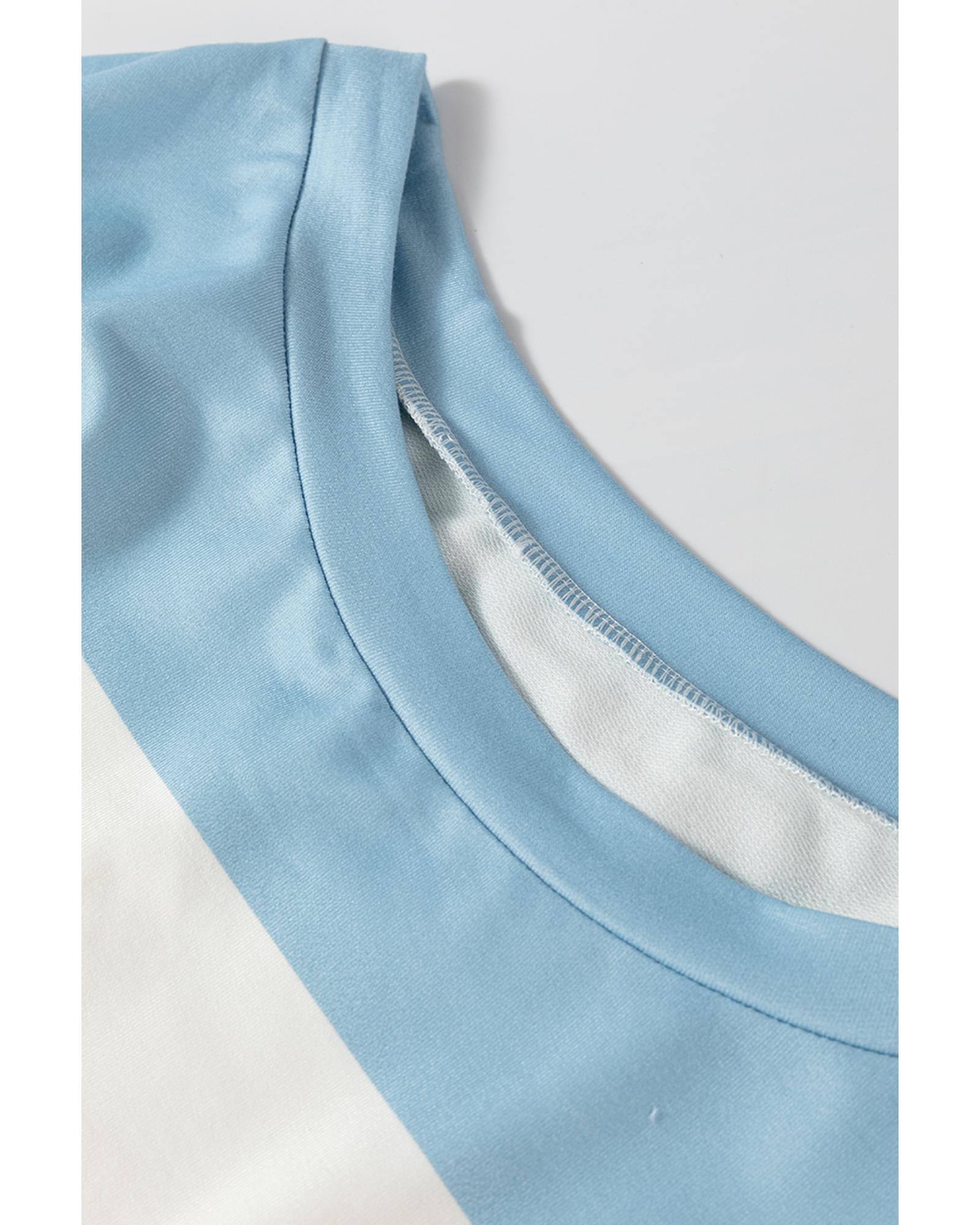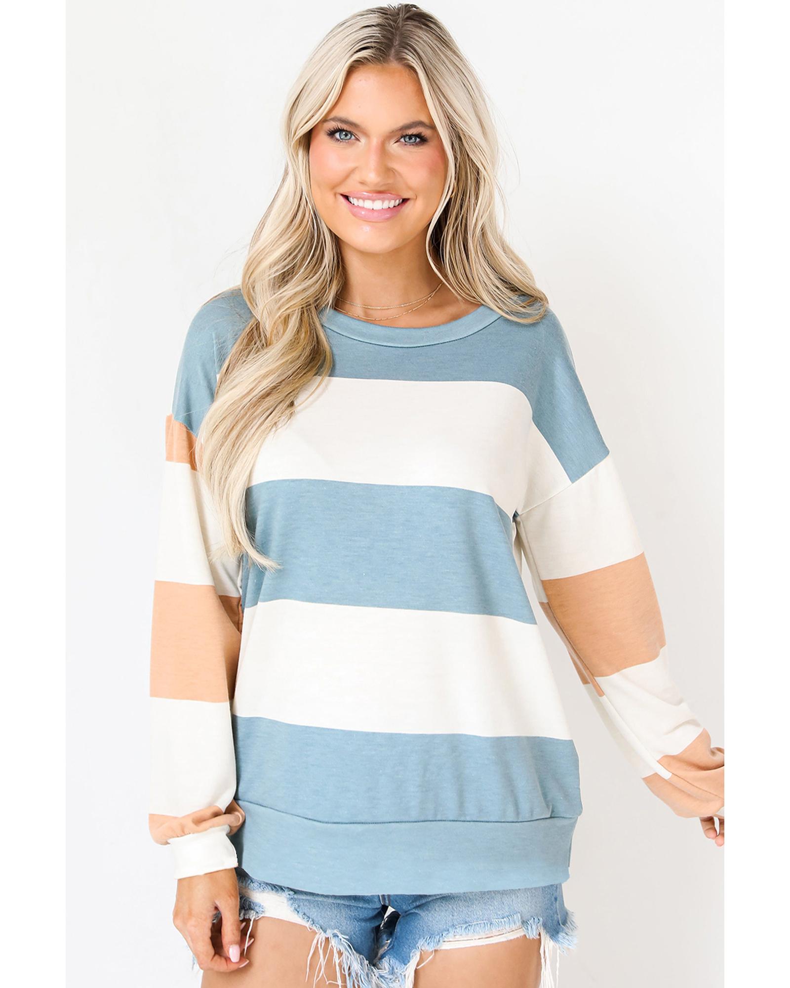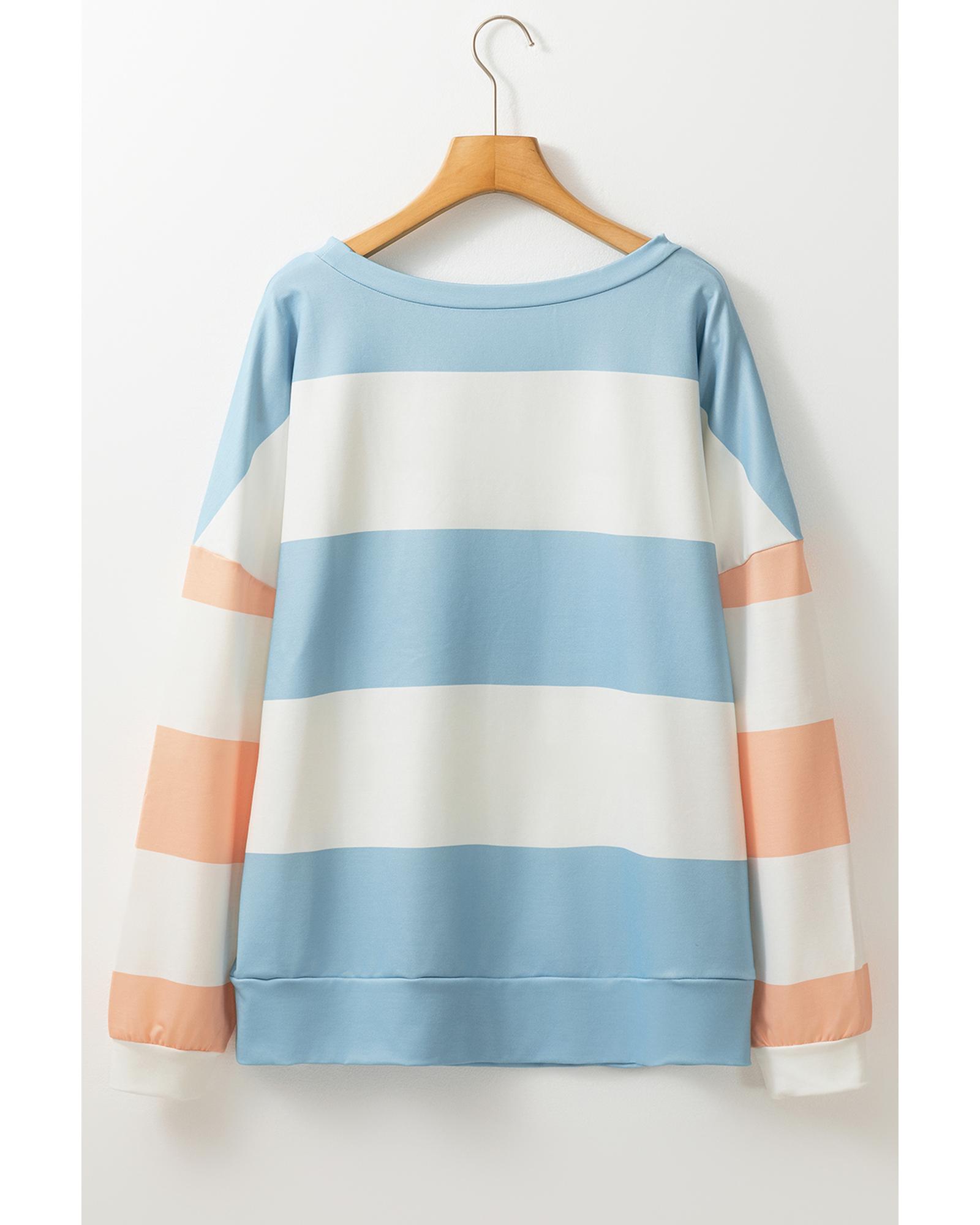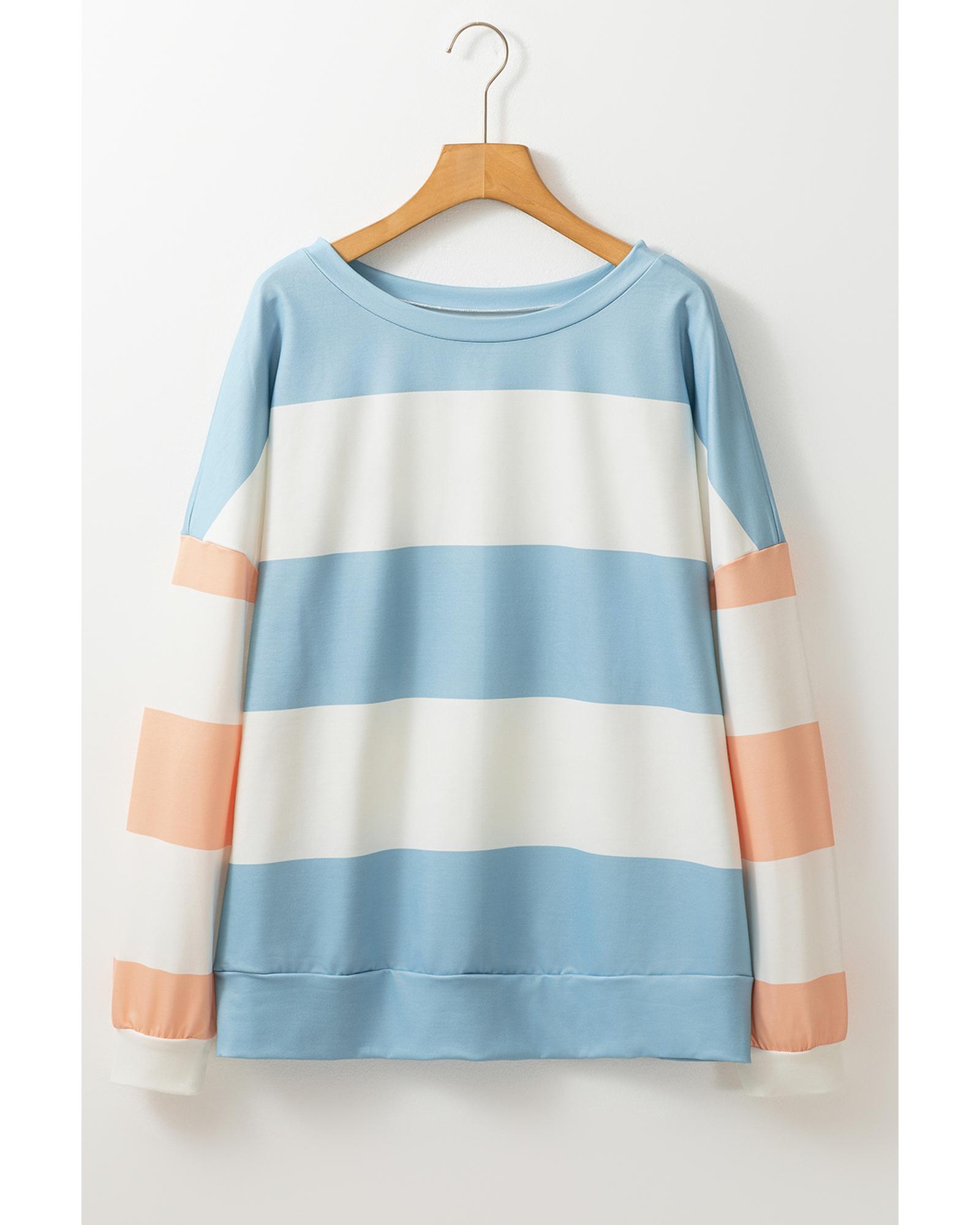 Light Blue Colorblock Striped Drop Shoulder Long Sleeve Top – XL