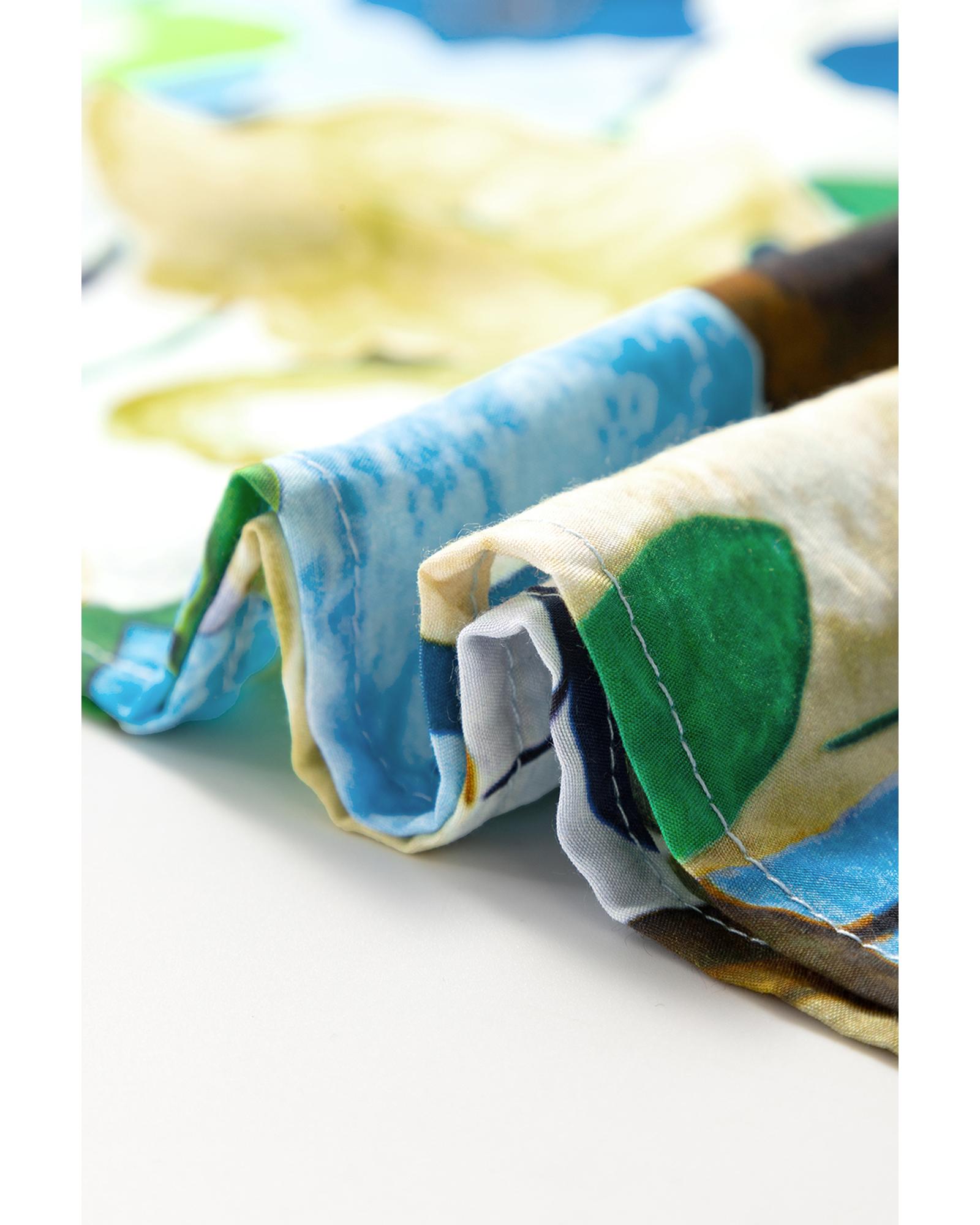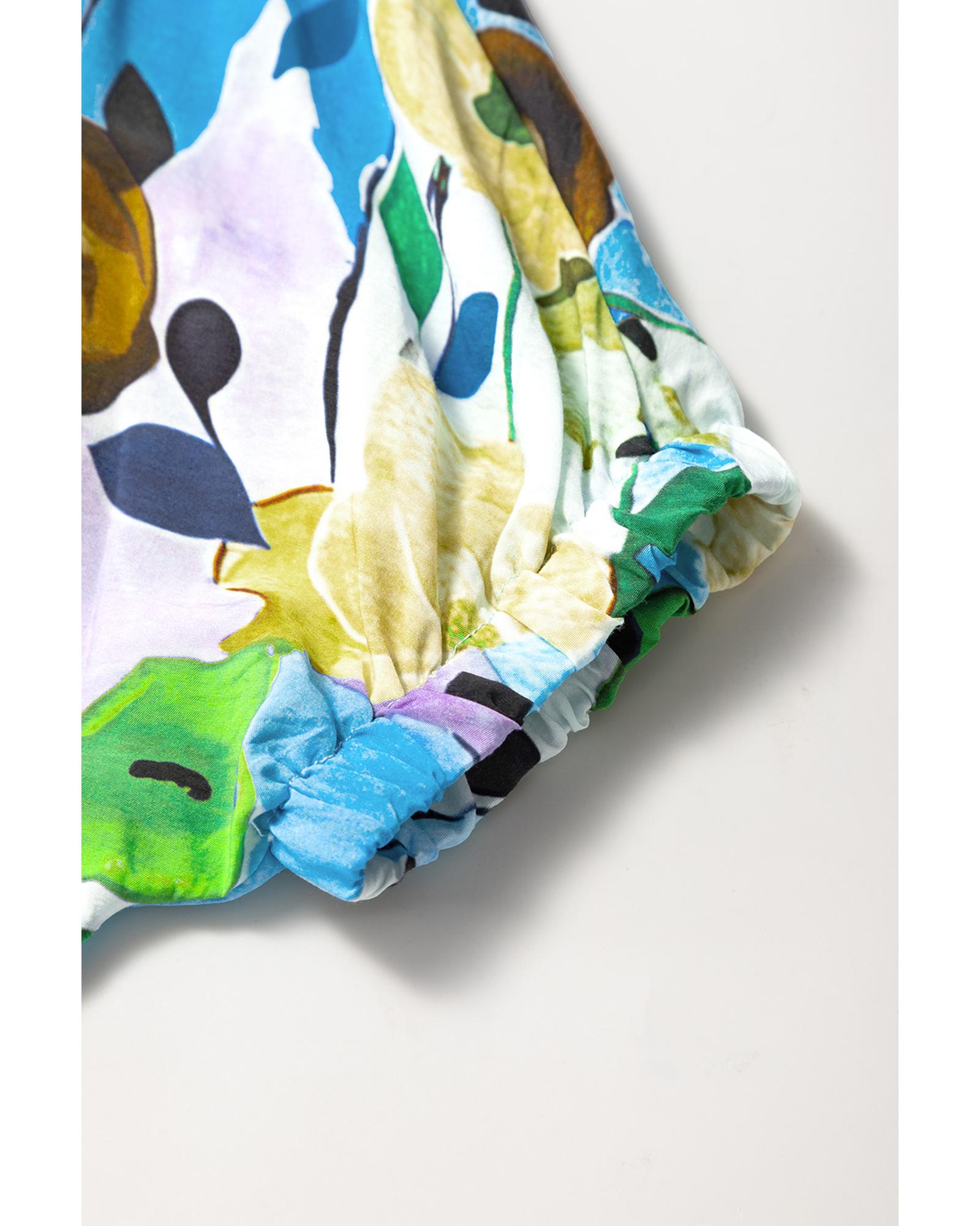 Light Blue Floral Print Slit V Neck Short Sleeve Blouse – L