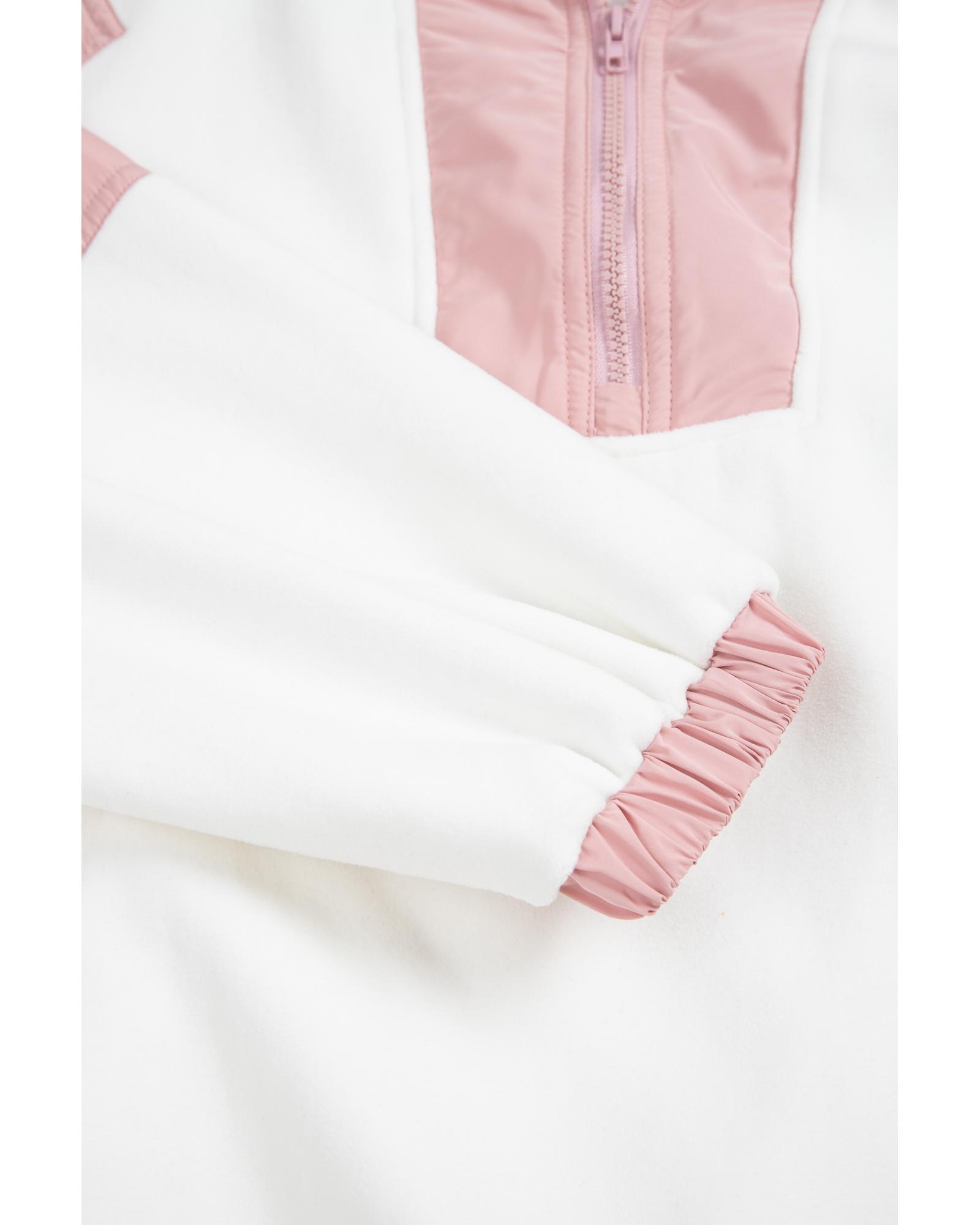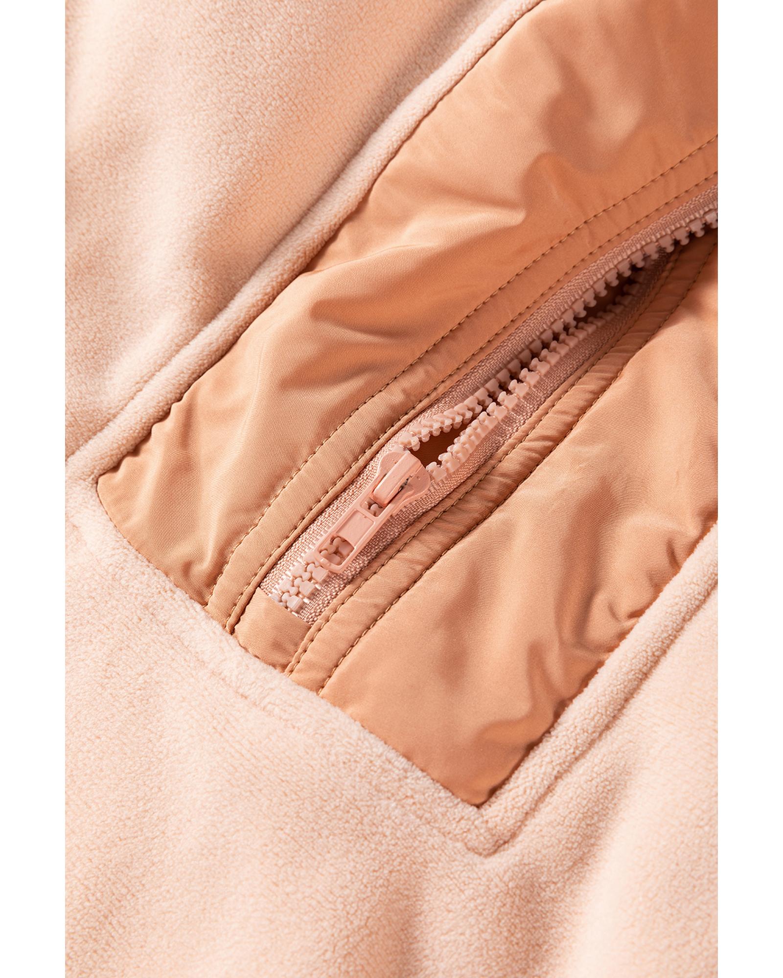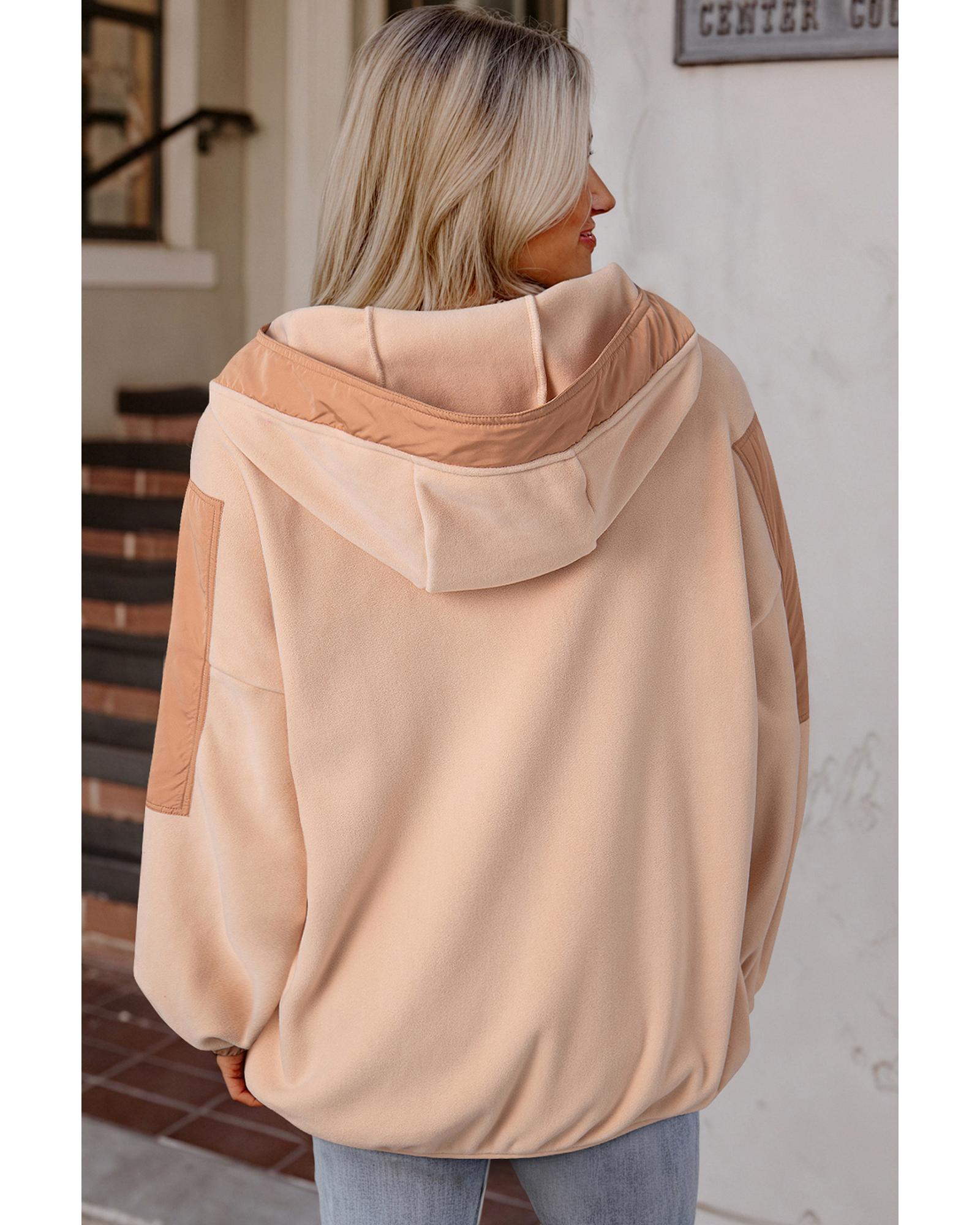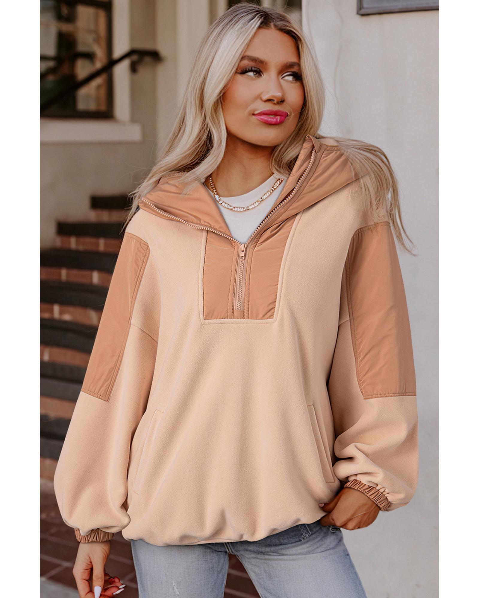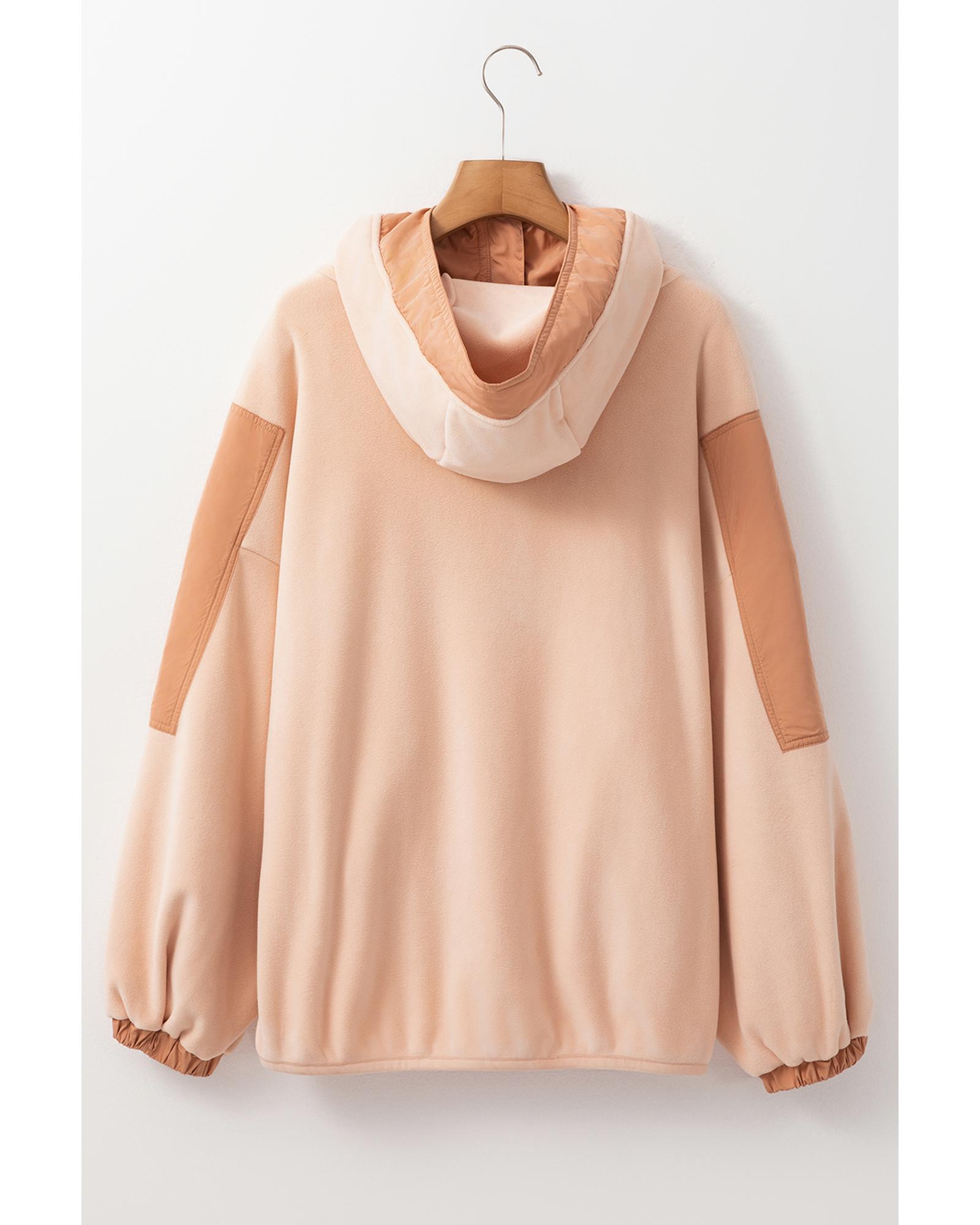 Light French Beige Colorblock Patchwork Half Zip Oversized Sherpa Hoodie – XL