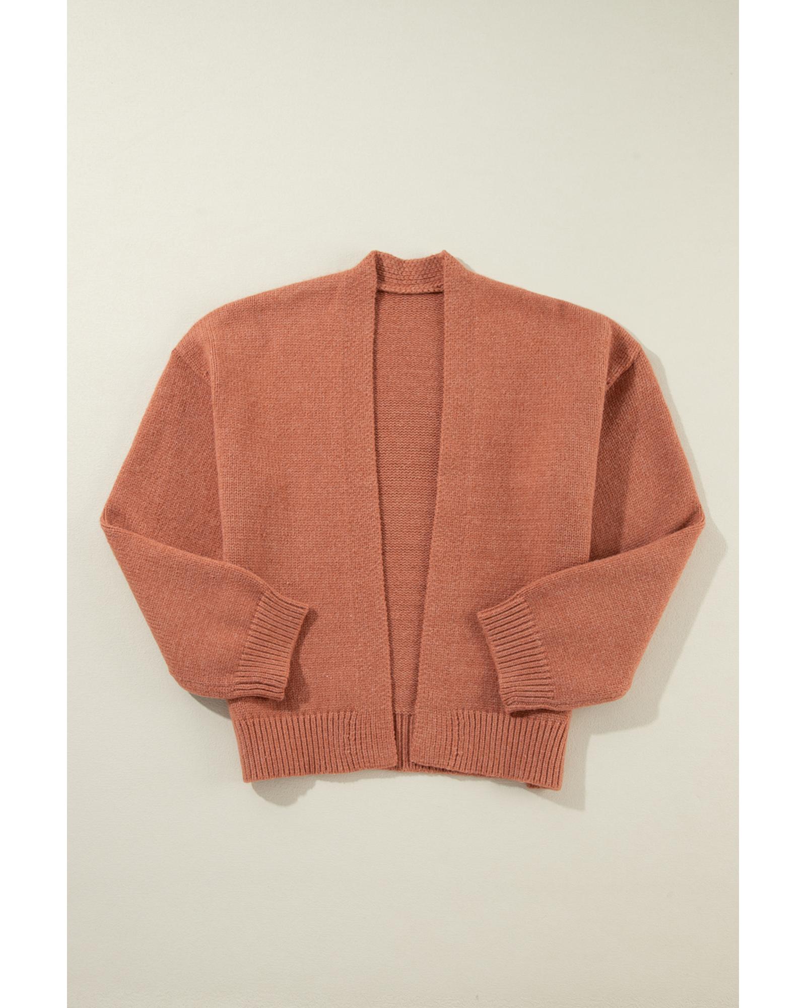 Light French Beige Drop Shoulder Open Front Cropped Cardigan – L