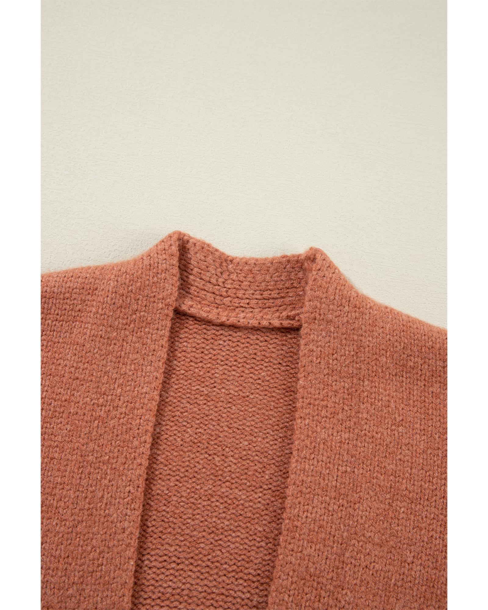 Azura Exchange Brown Pompom Color Block Open Front Cardigan - L