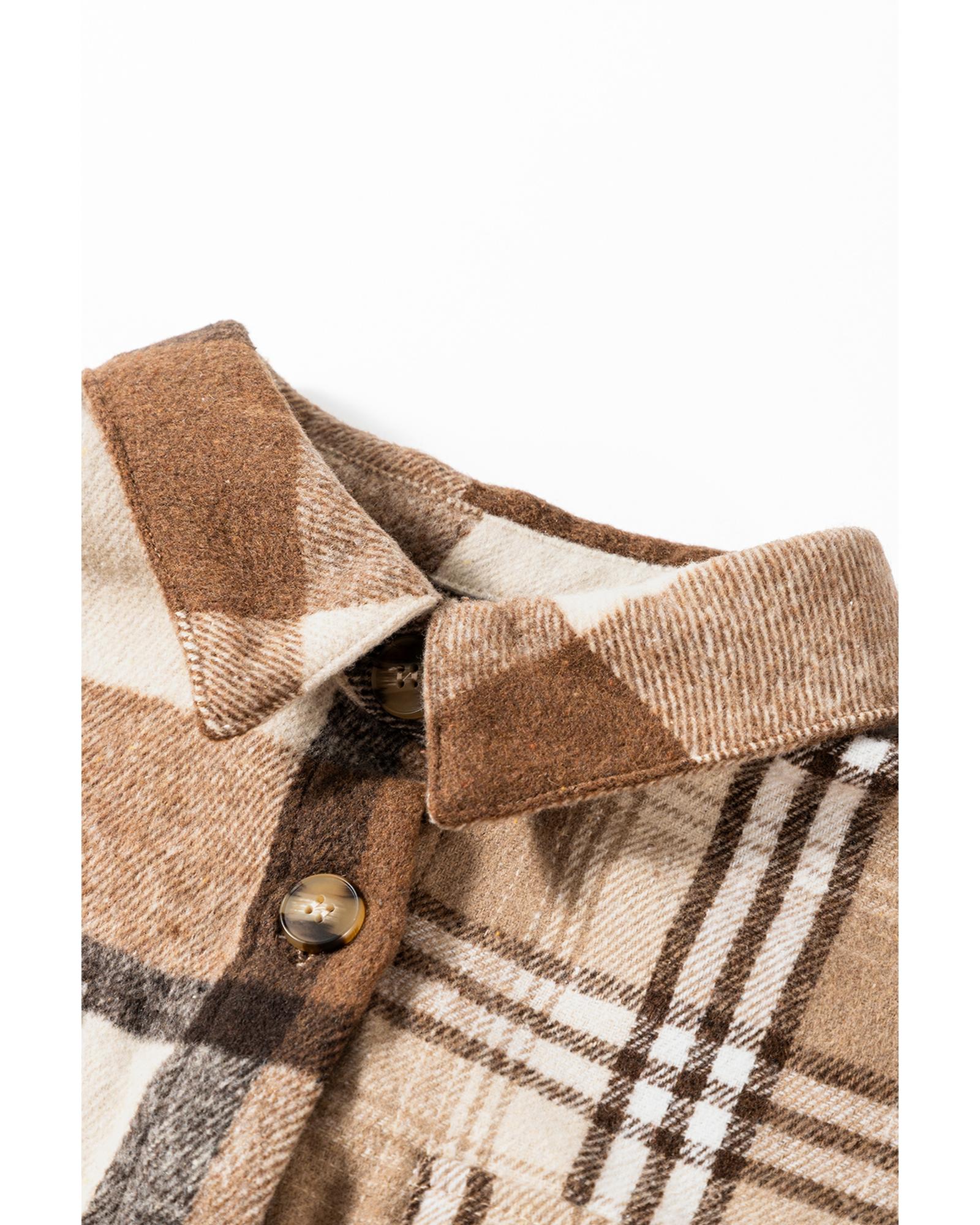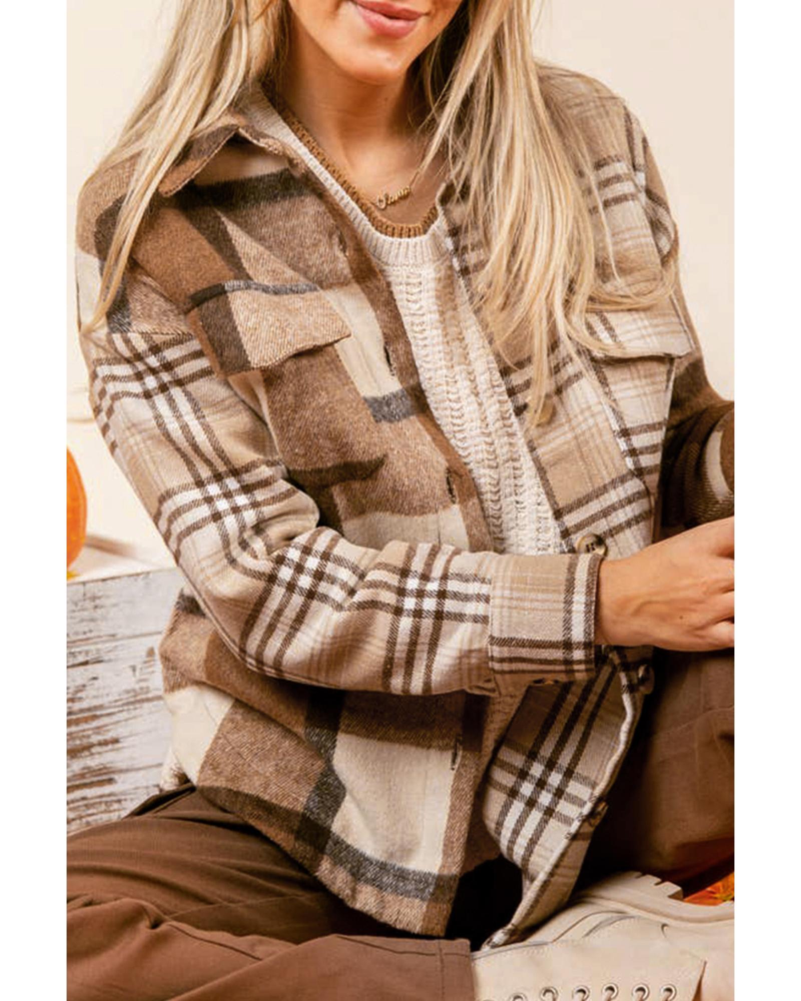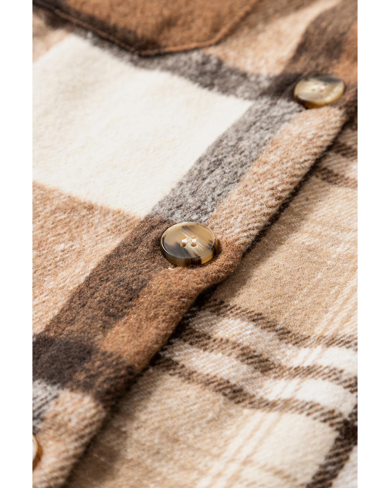 Light French Beige Flannel Plaid Double Flap Pocket Shacket – XL