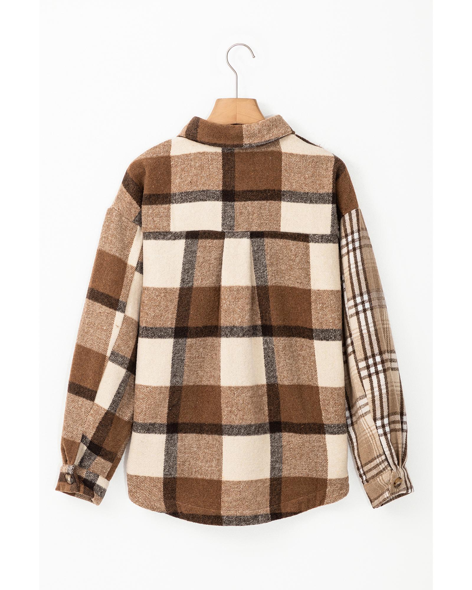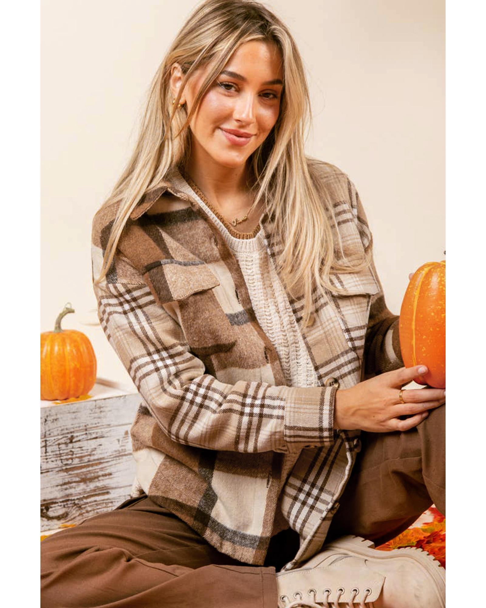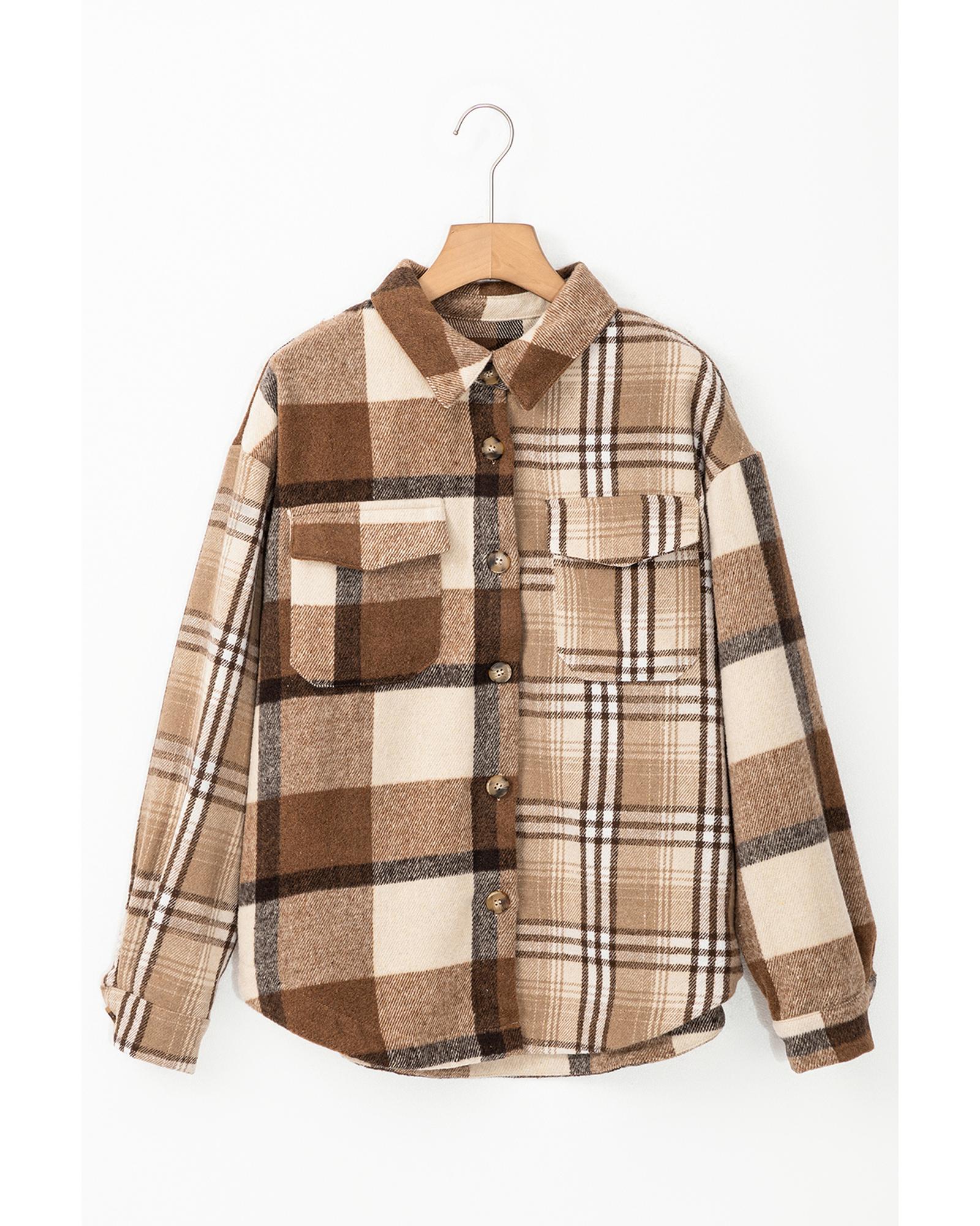 Light French Beige Flannel Plaid Double Flap Pocket Shacket – XL