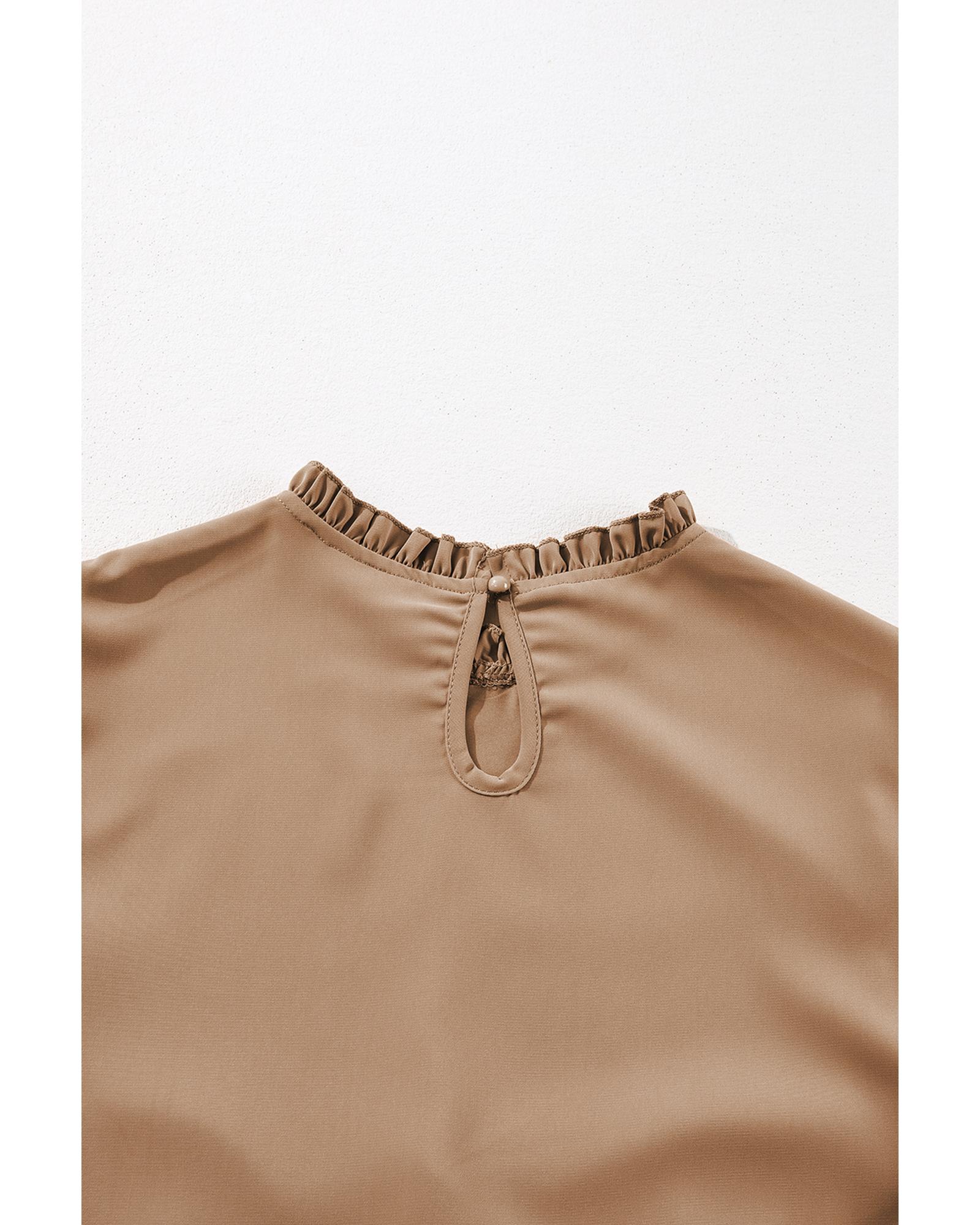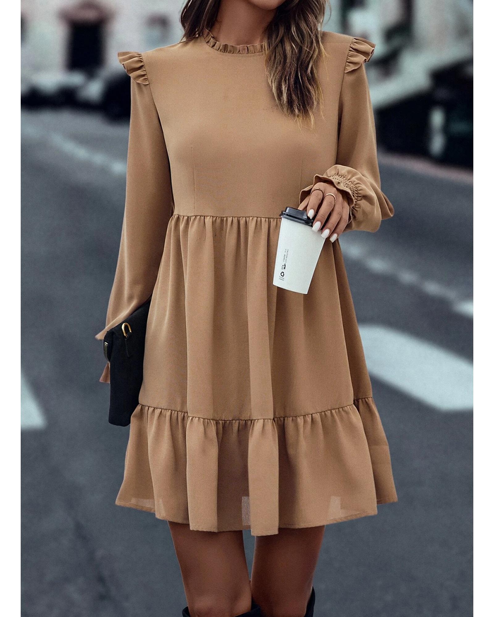 Light French Beige Frilled Collar Ruffled Shoulder Tiered Dress – S