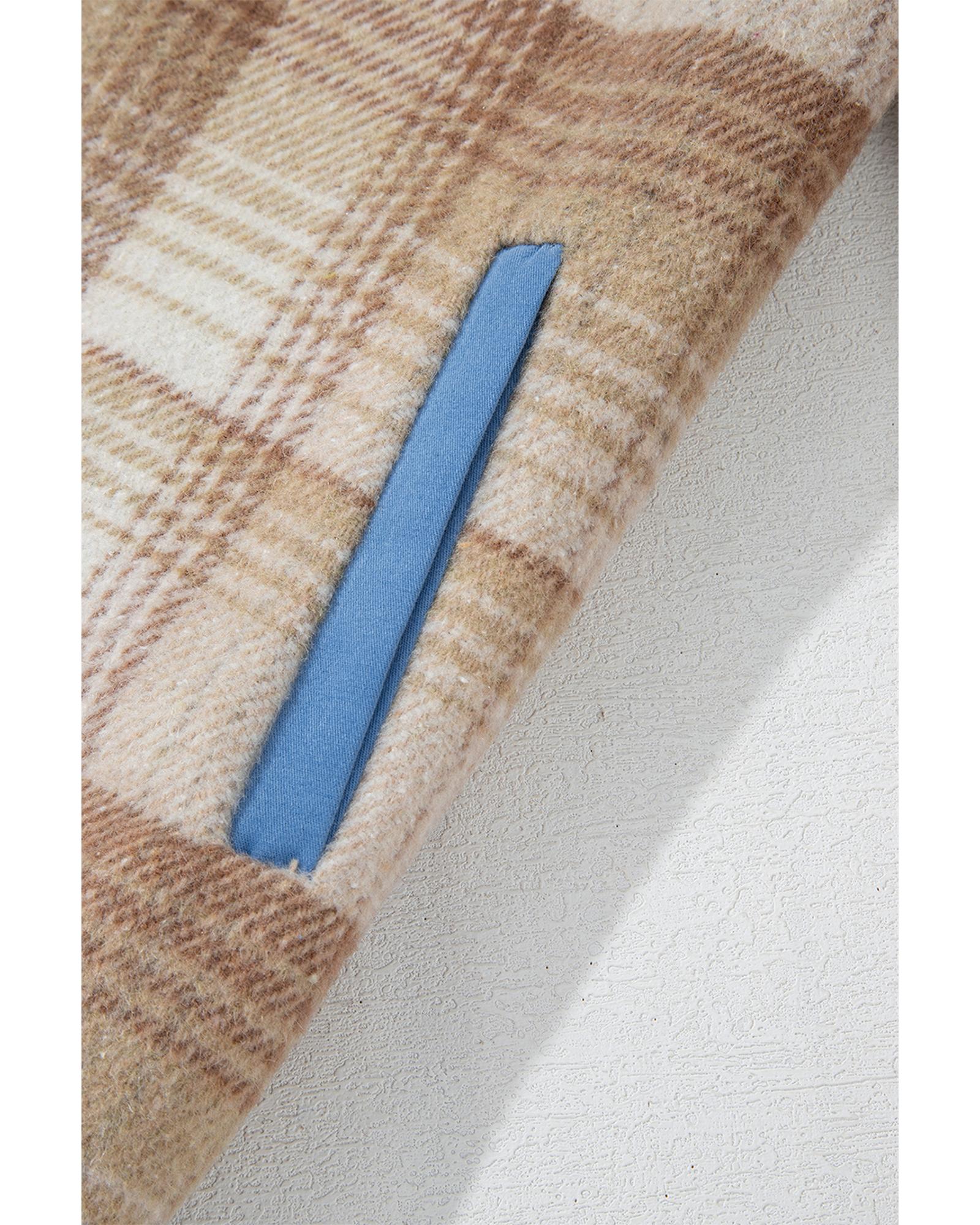 Light French Beige Plaid Patchwork Flap Detail Button Up Shacket - M Original price was: $85.99.Current price is: $46.99.