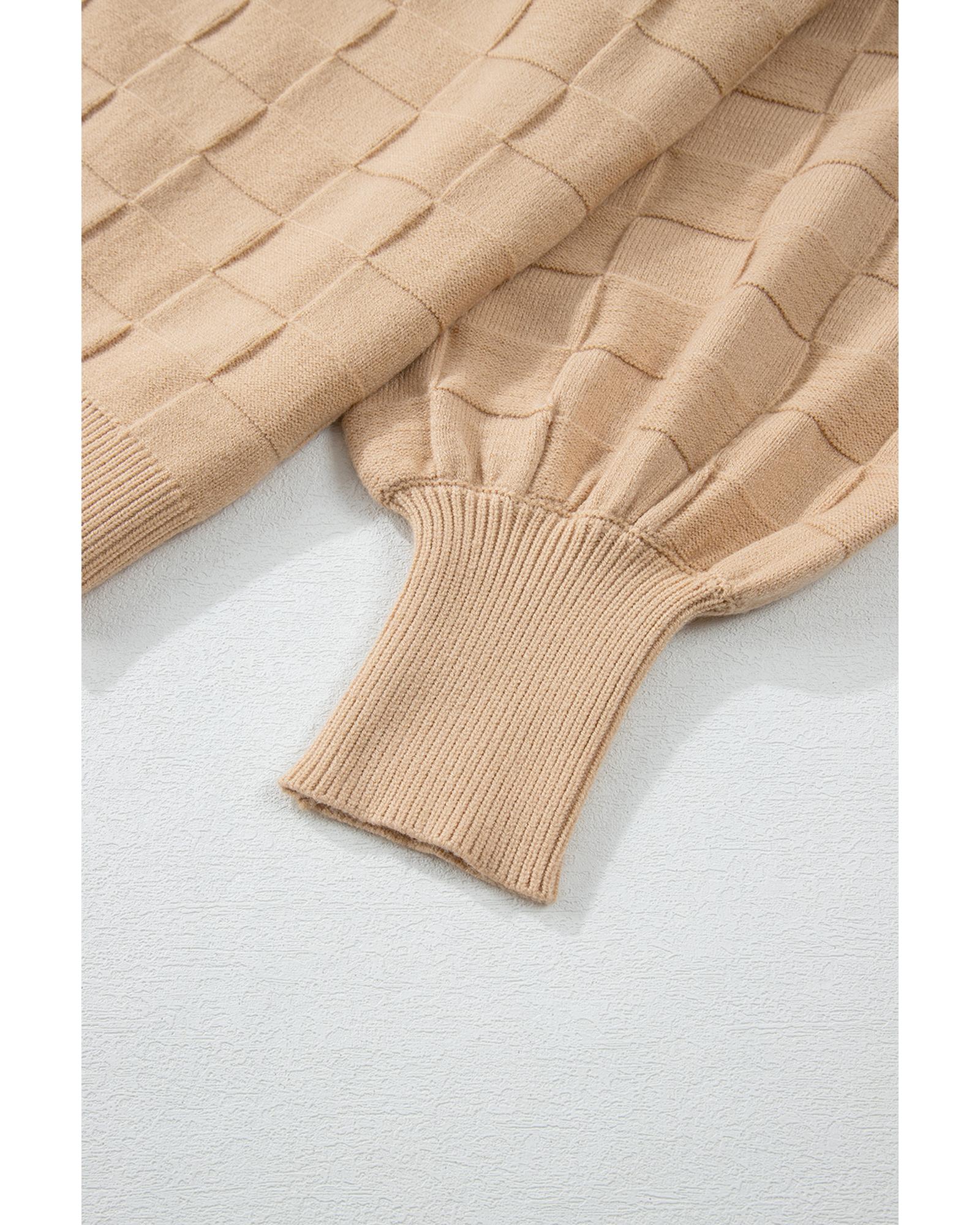 - Simple yet elegant Light French Beige Solid Checkered Textured Knit sweater
