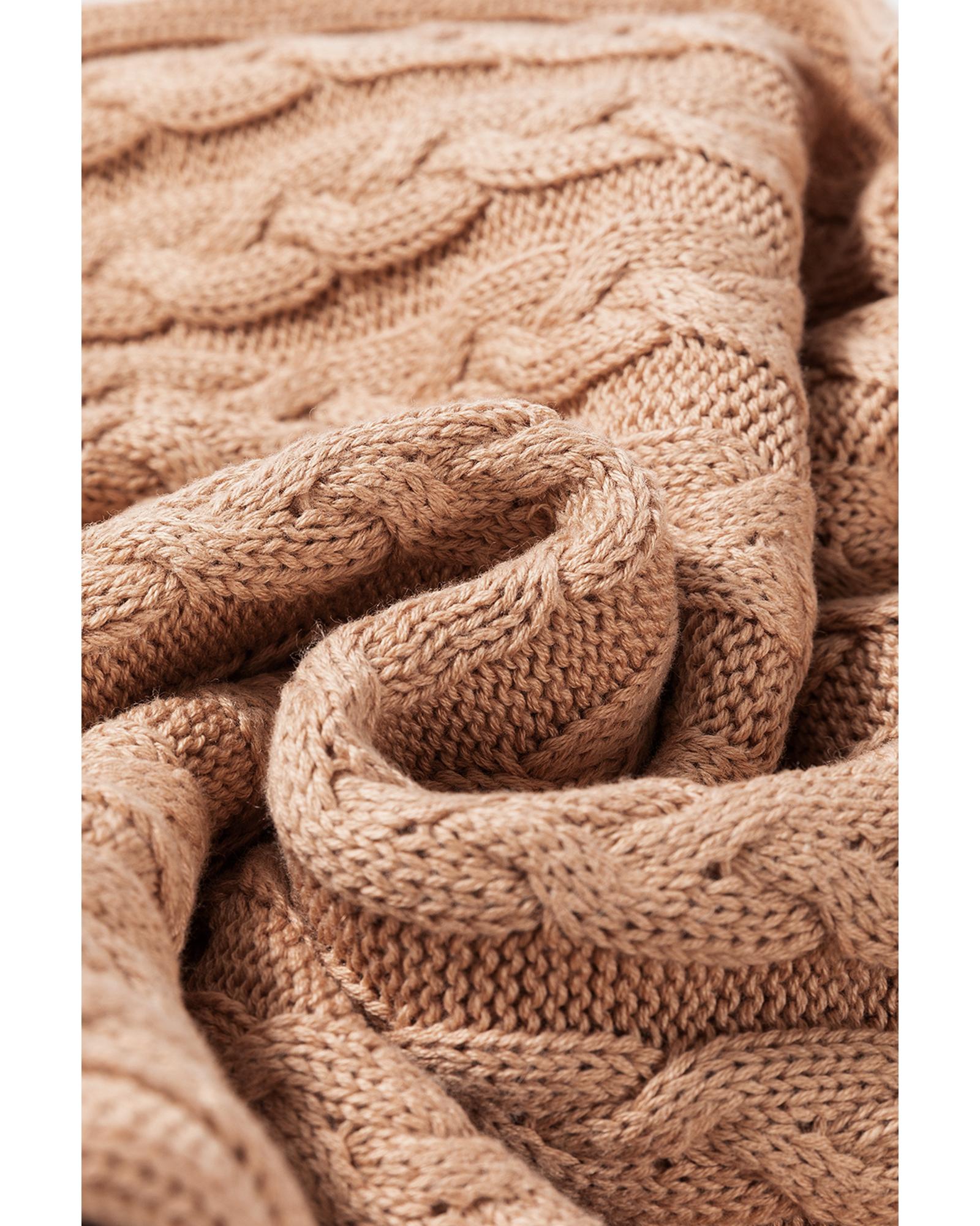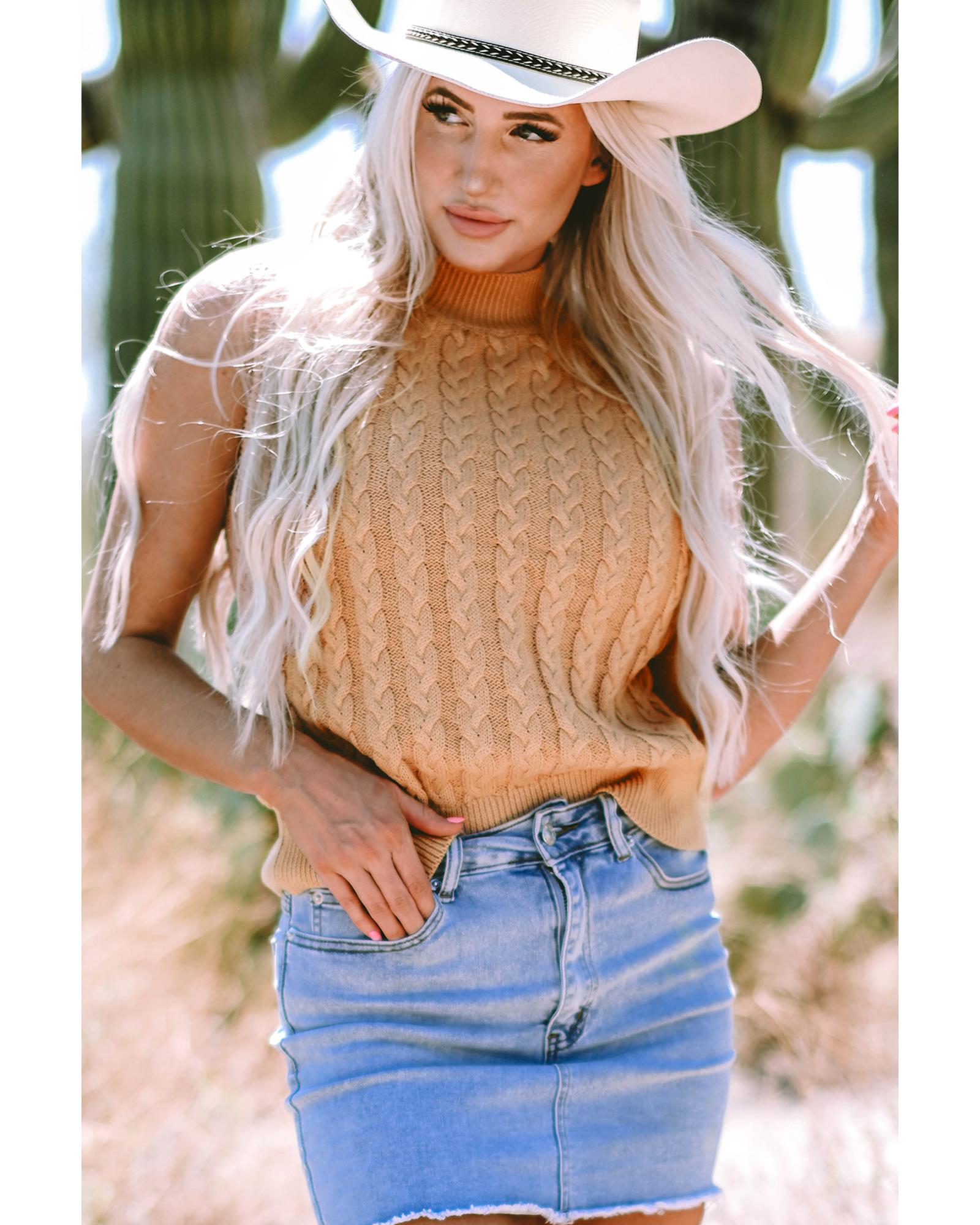 Light French Beige Solid Color Cable Knit High Neck Tank Top – L