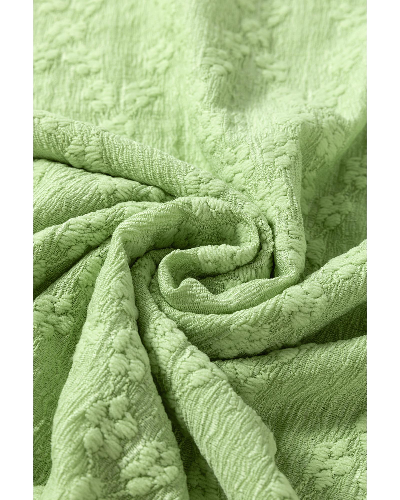 Light Green Solid Color Textured Side Split Crew Neck Blouse – L