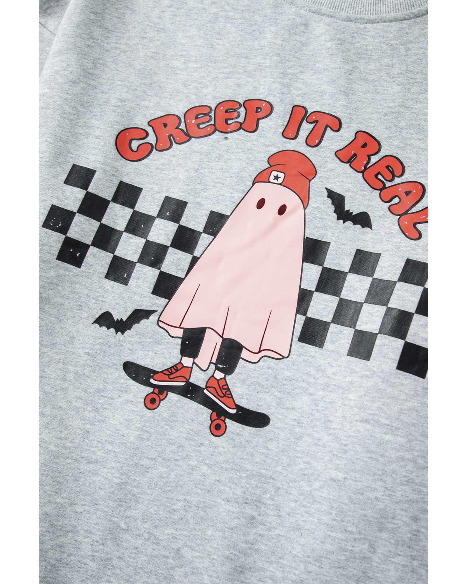 Light Grey Creep It Real Ghost Print Plus Size Sweatshirt – 3X