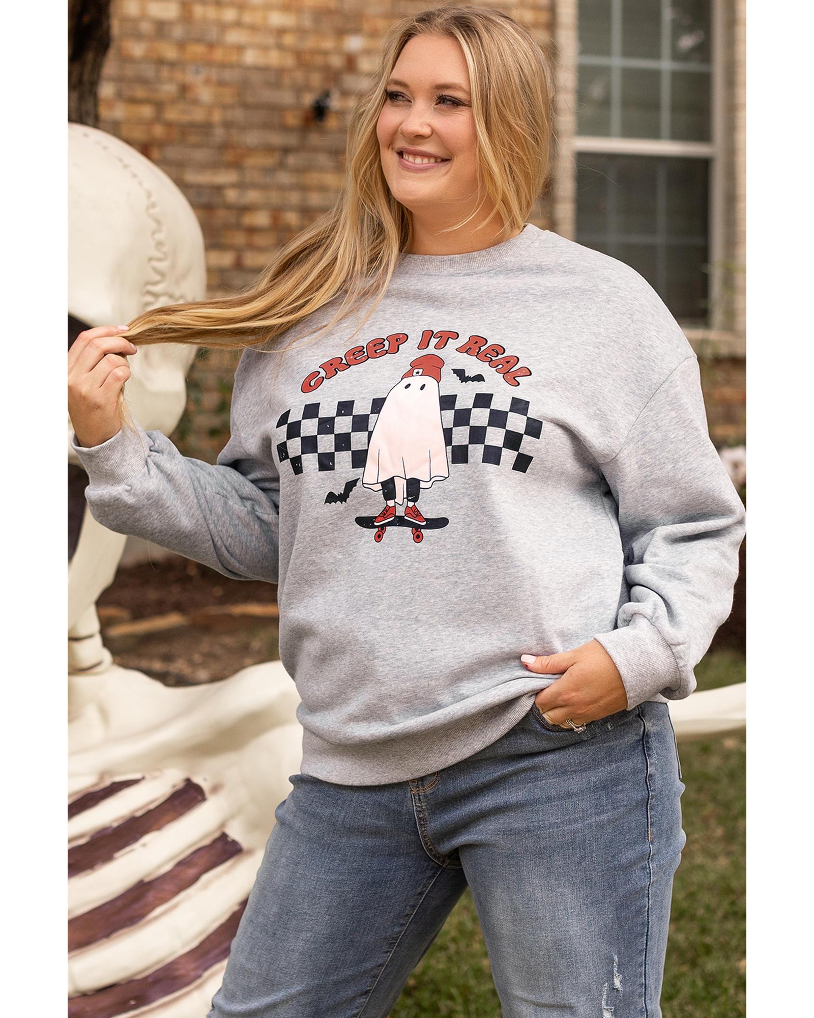 - Light Grey Creep It Real Ghost Print Plus Size Sweatshirt