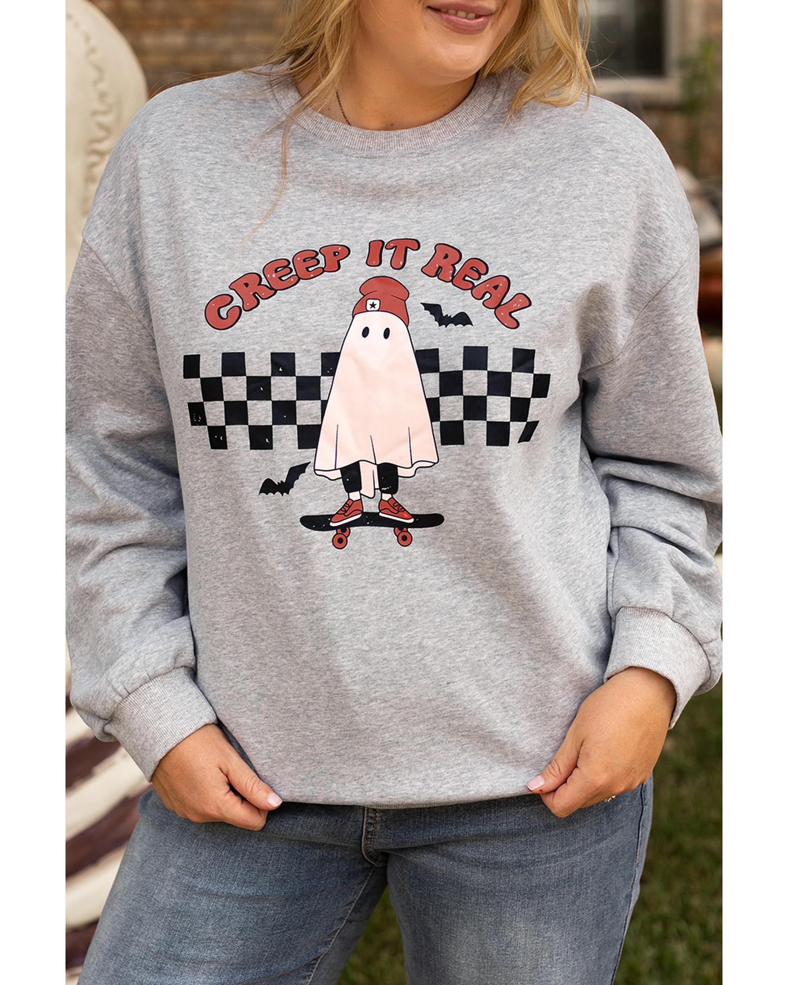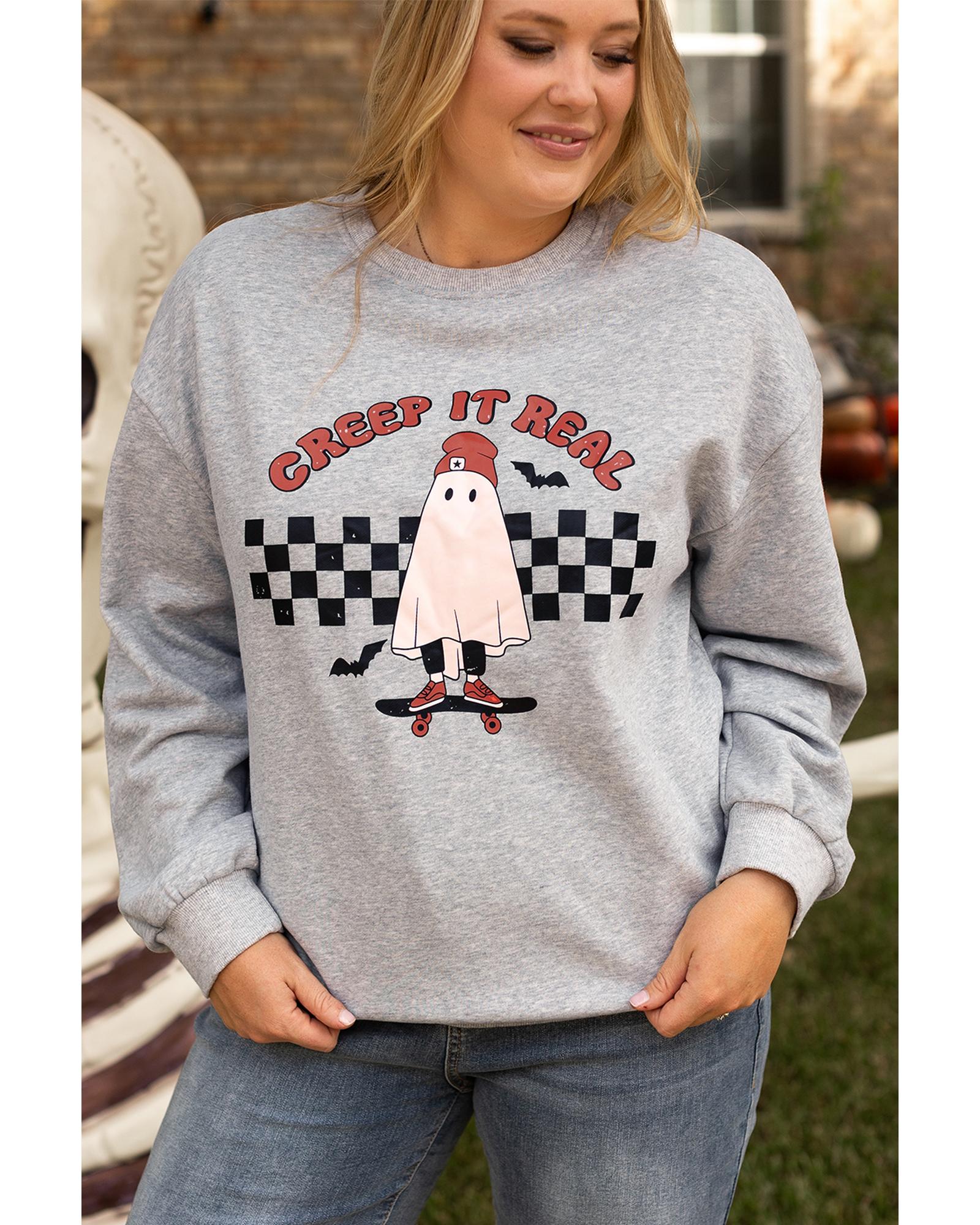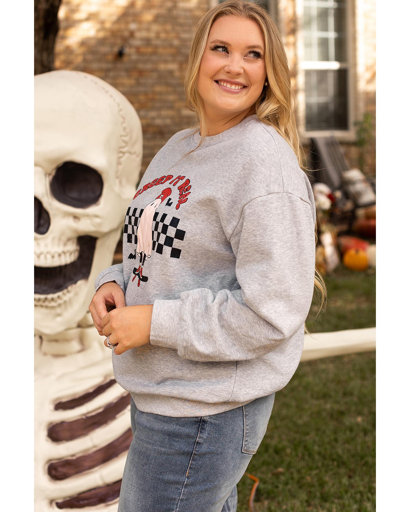 • Light Grey Creep It Real Ghost Print Plus Size Sweatshirt
