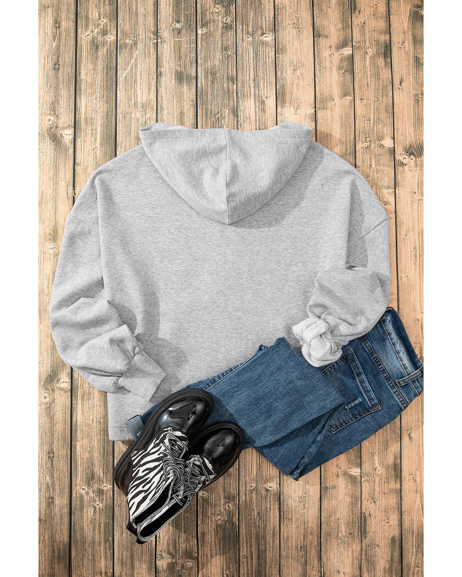 Light Grey Fleece Lined Half Zipper Kangaroo Pockets Loose Hoodie – L