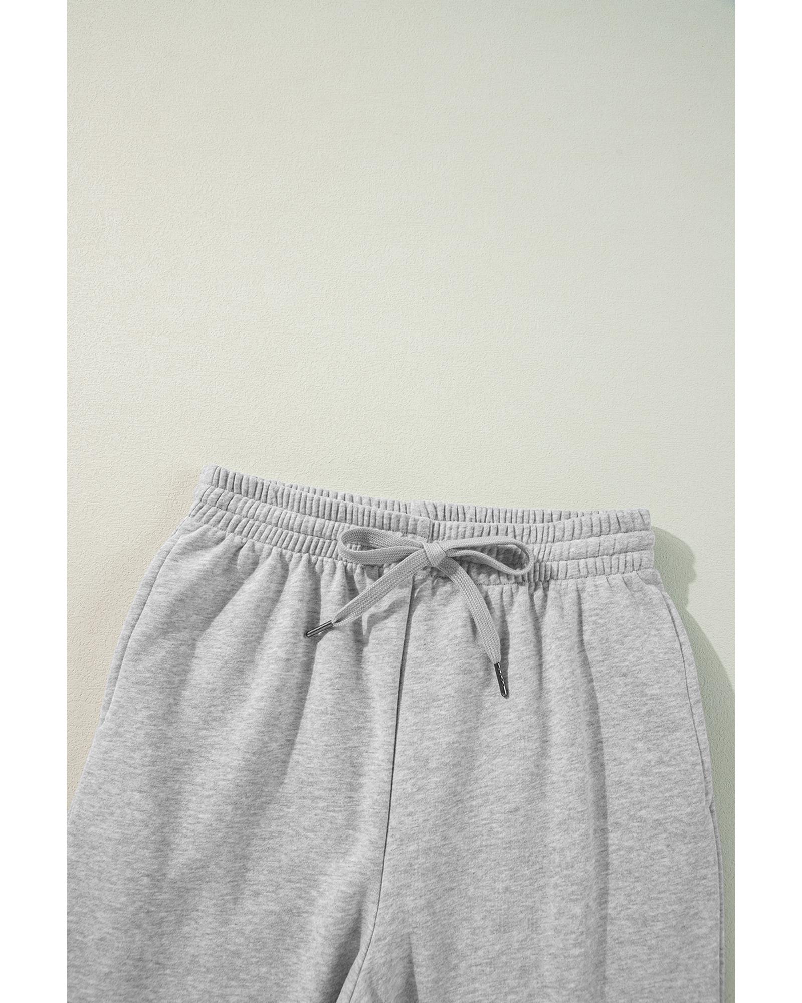 Light Grey Solid Color Fleece Lined Drawstring Waist Joggers - L