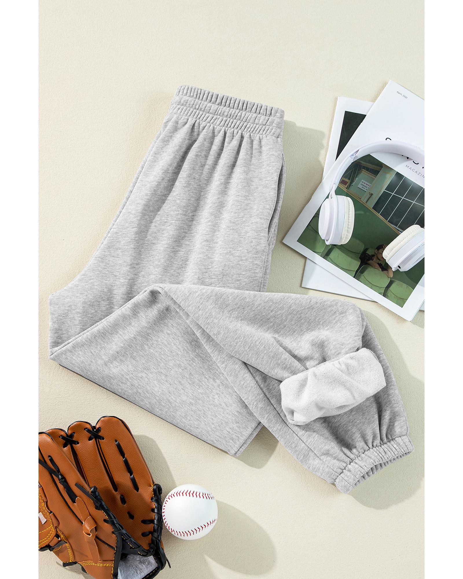 Light Grey Solid Color Fleece Lined Drawstring Waist Joggers - S