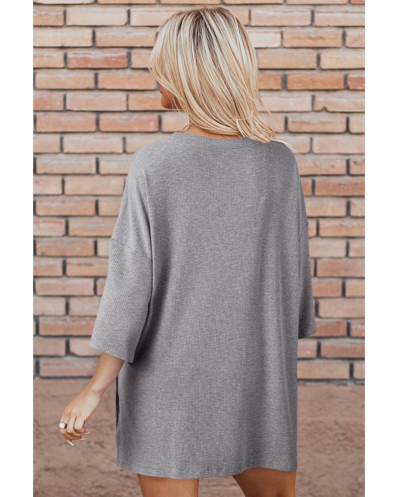 Light Grey Solid Color Loose Tunic Top and Slim Shorts Set – 2XL