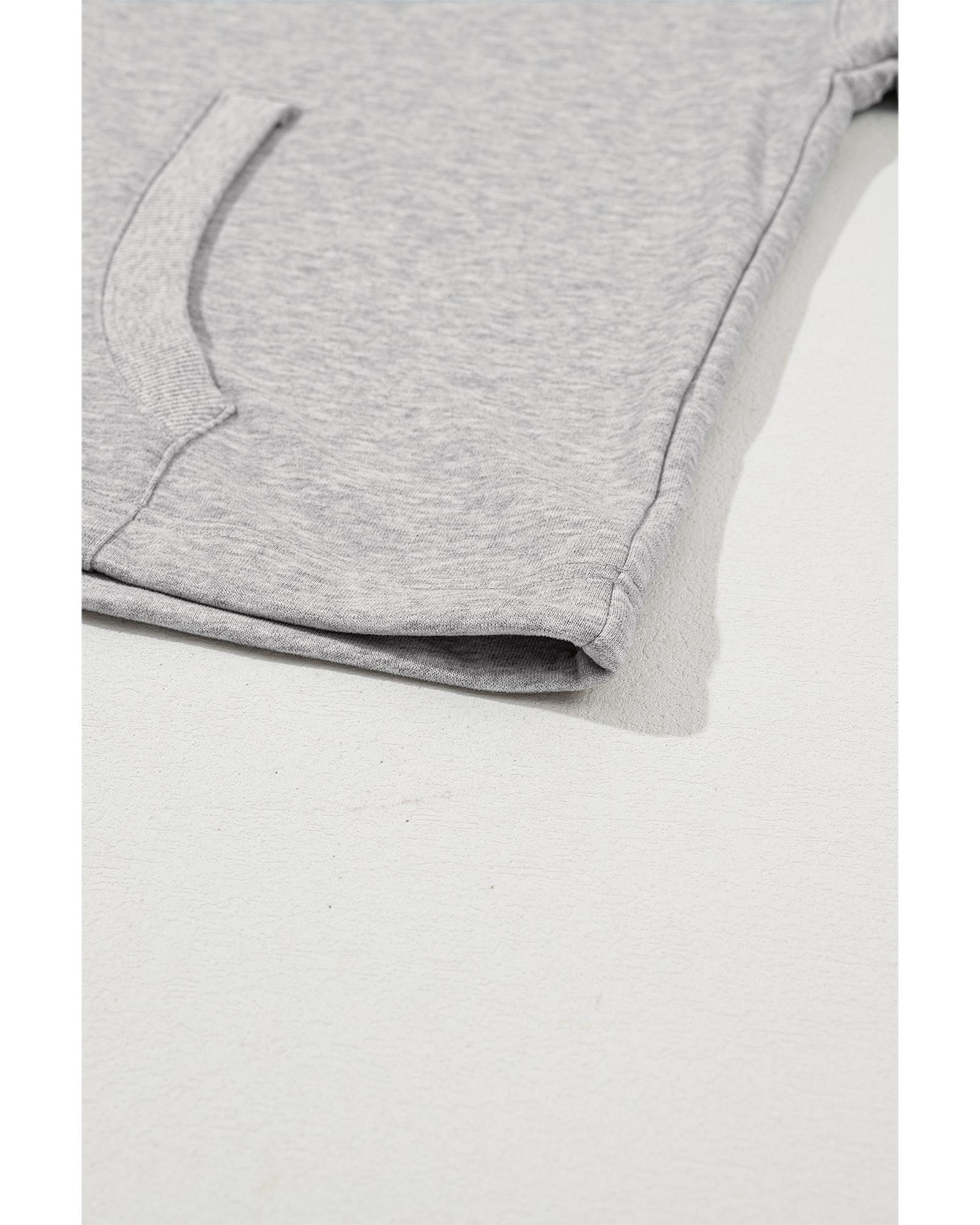 Light Grey Solid Kangaroo Pocket Half Zipper Oversized Hoodie – M