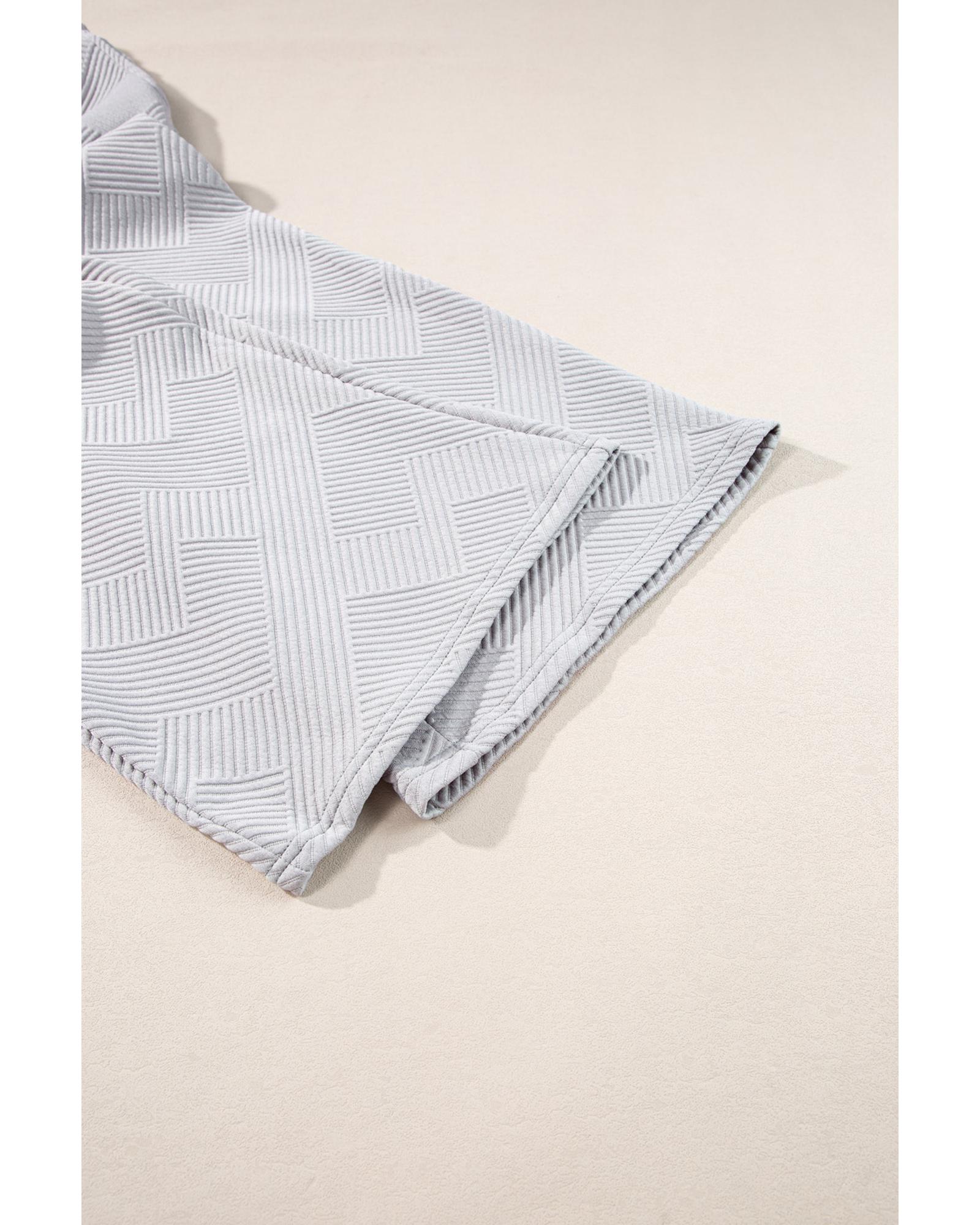 Light Grey Solid Textured Collared V Neck Top and Wide Leg Pants Set – 2XL