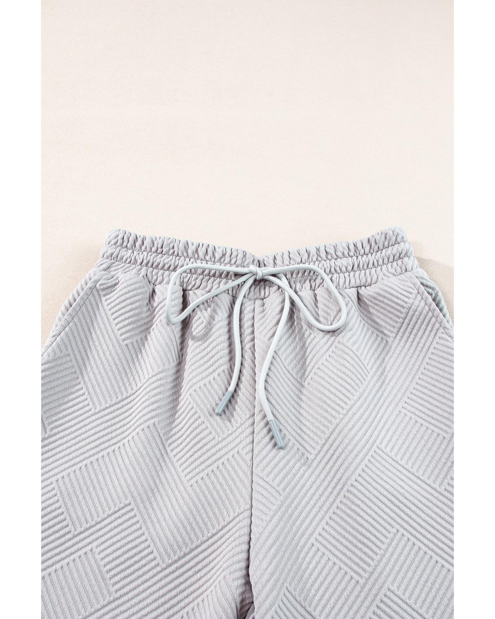 Light Grey Solid Textured Collared V Neck Top and Wide Leg Pants Set – M