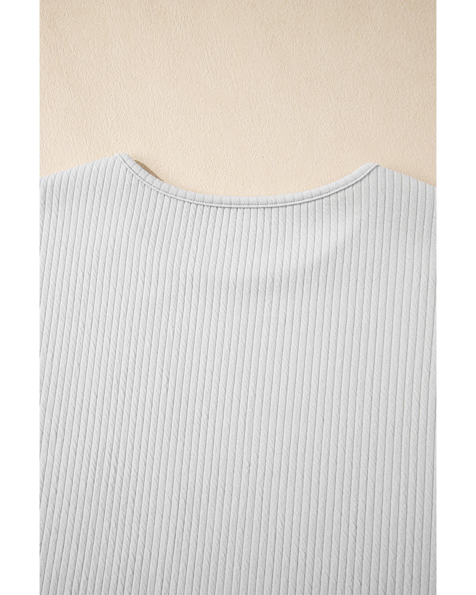 Oatmeal Textured Puff Sleeve T-shirt - XL