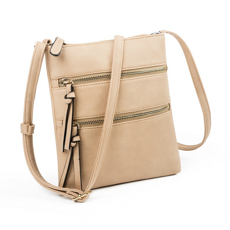 Light khaki Compact Women’s Crossbody Bag – Adjustable Strap, Double Zipper Closure, 18x21cm Lightweight PU Leather Shoulder Bag