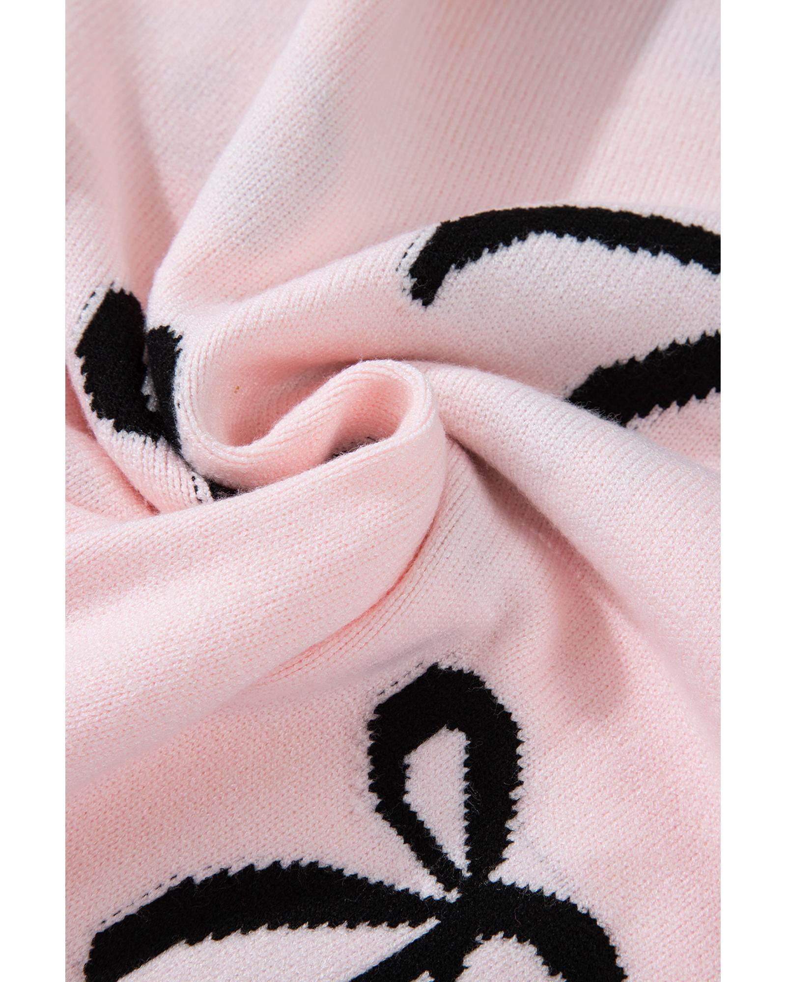 - Light Pink Bow Pattern Knitted Loose Fit Sweater
