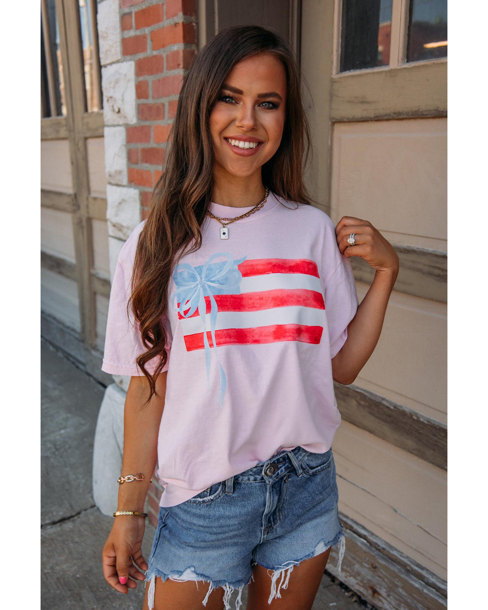 Light Pink Flag Bow Graphic Crewneck Tee – M