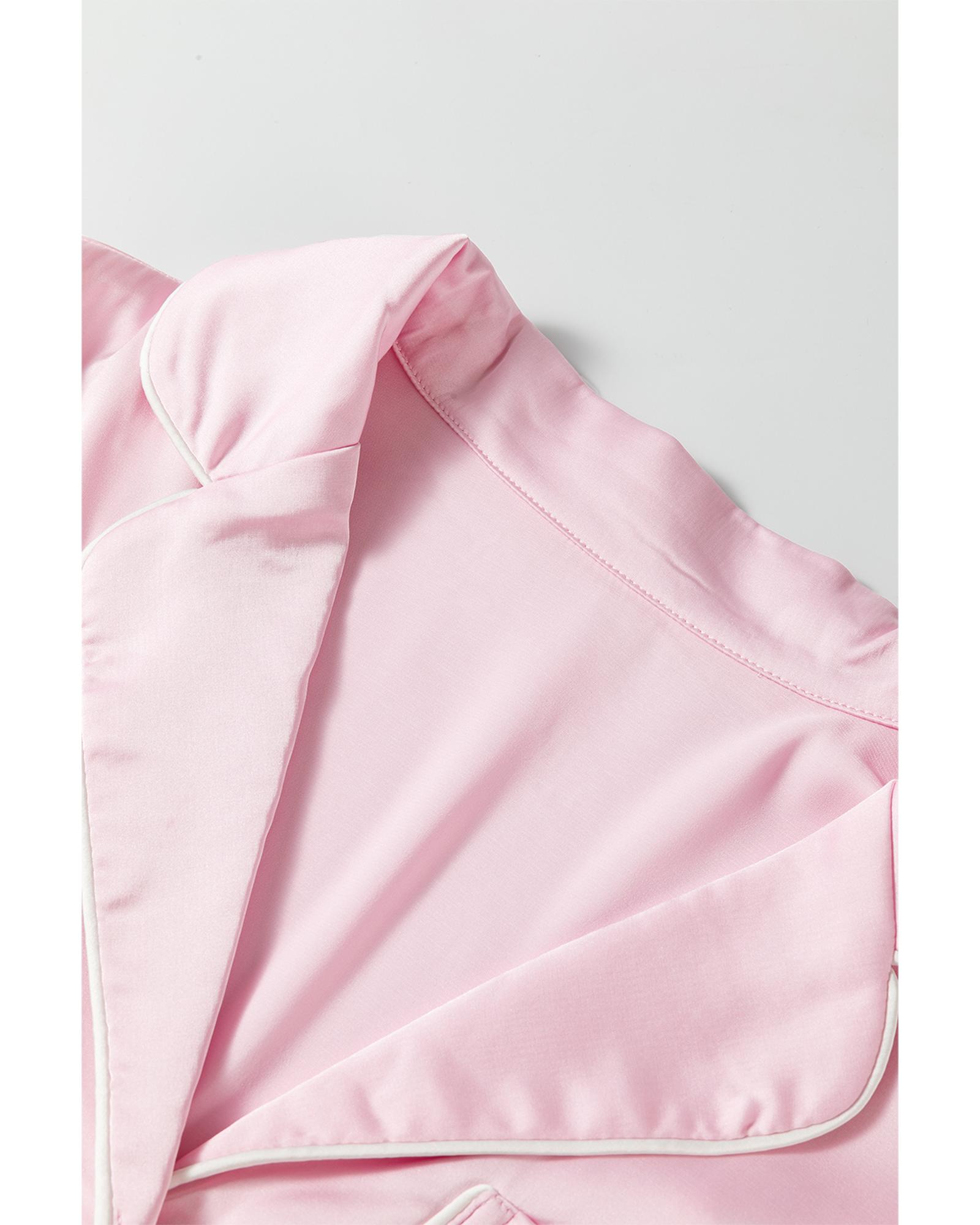 Light Pink Satin Knot Accent Shirt and Ruffled Pants Lounge Set – XL