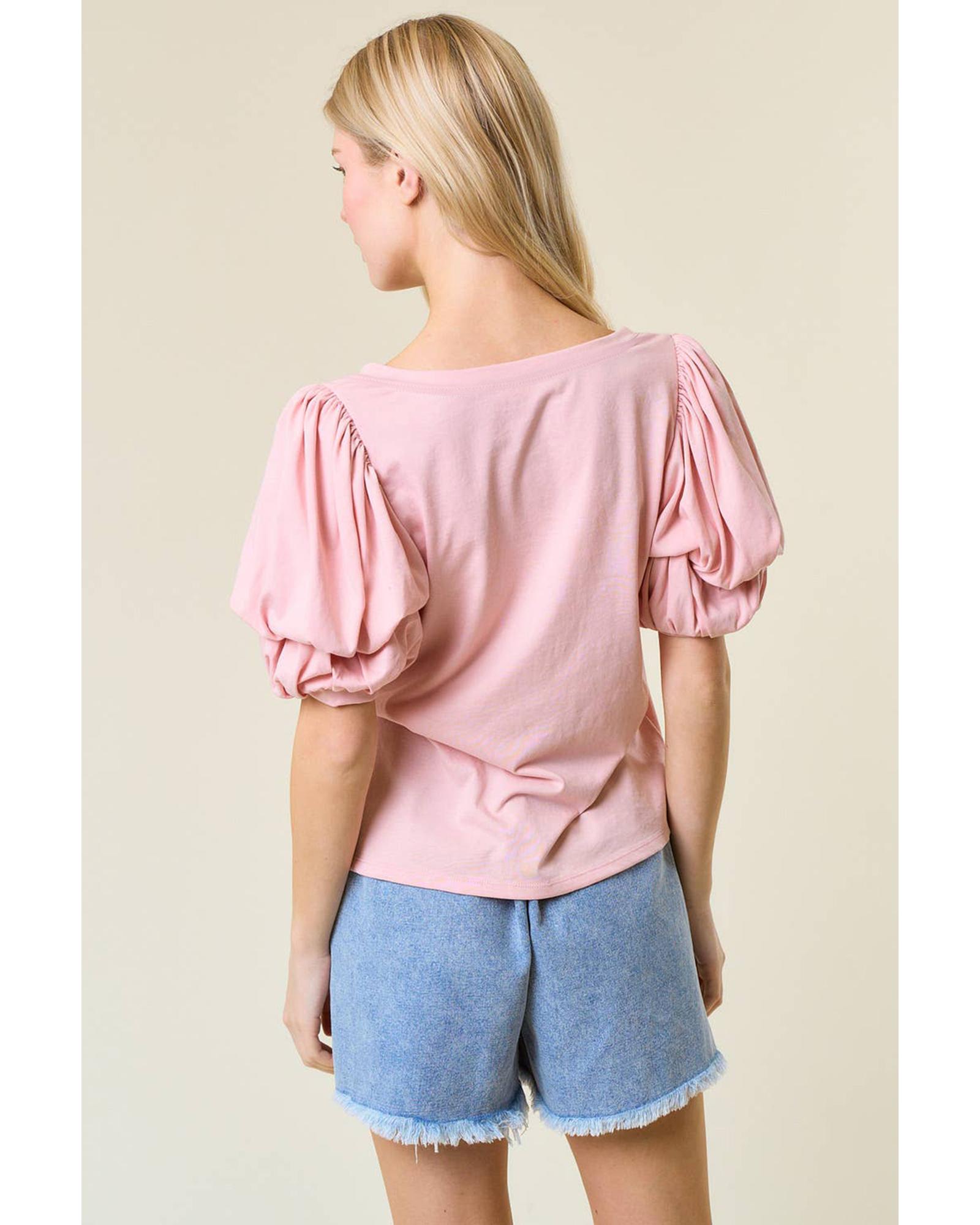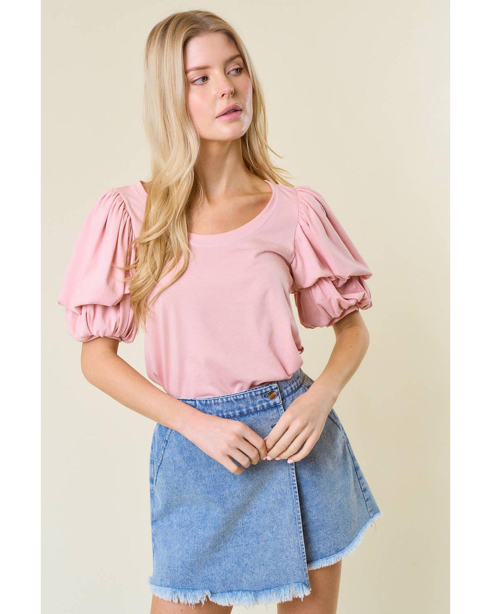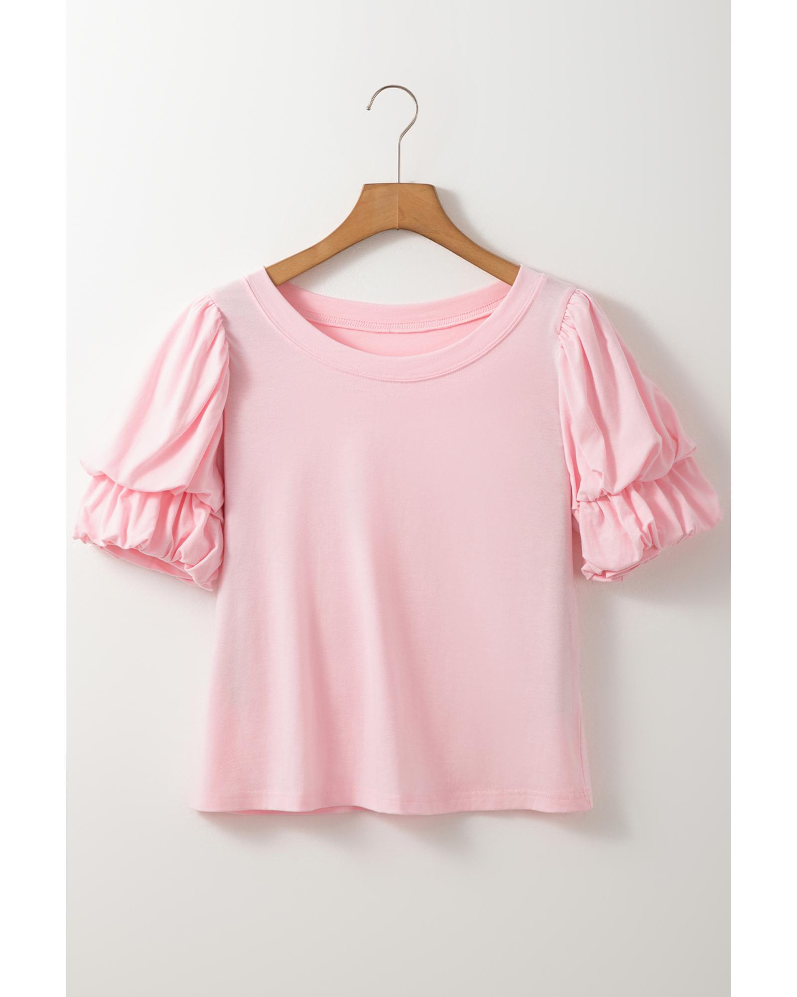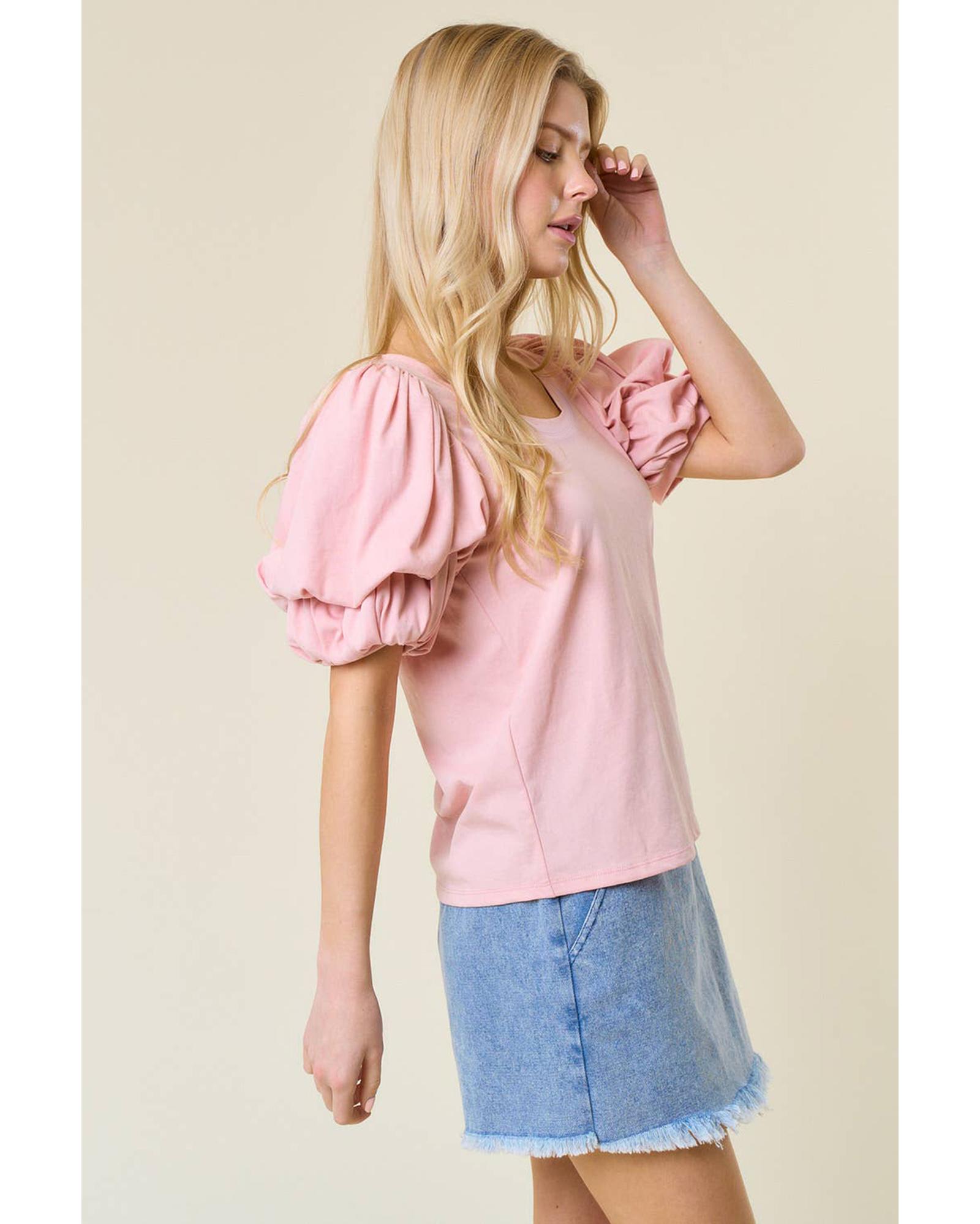 Light Pink Scoop Neck Bubble Sleeve Tee – XL