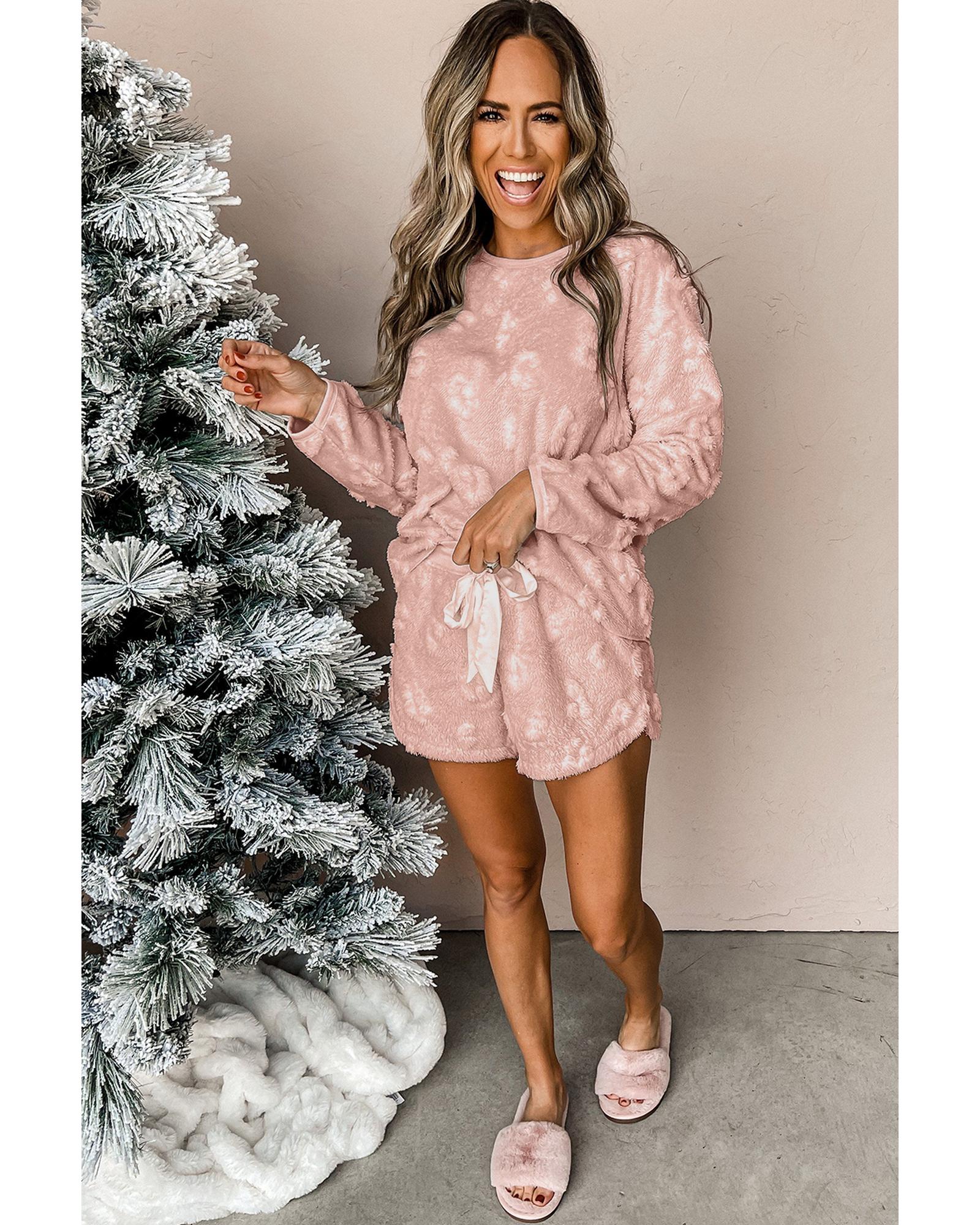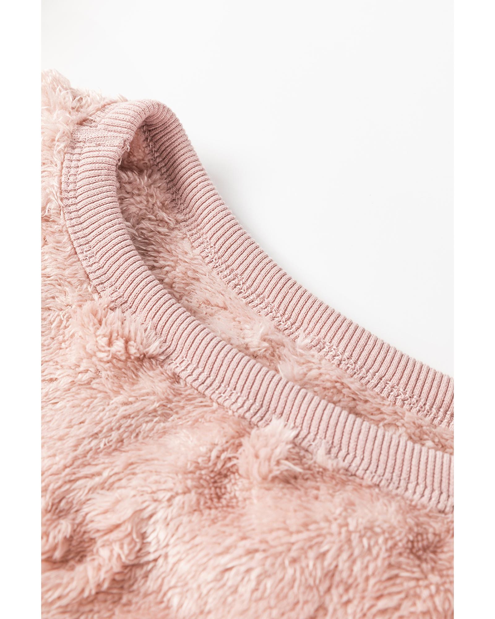 Light Pink Textured Leopard Fleece Loose Two Piece Lounge Set – XL