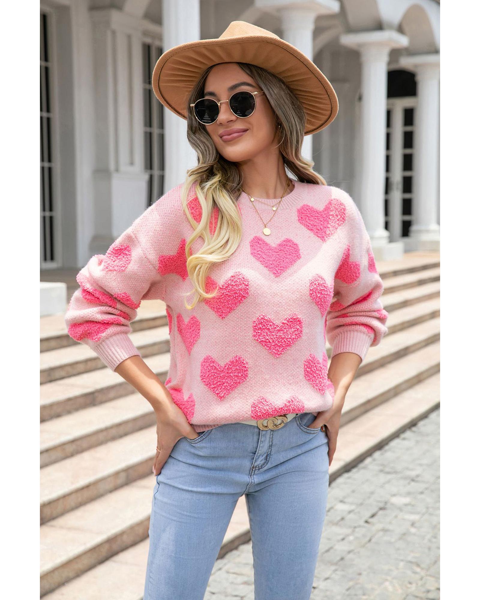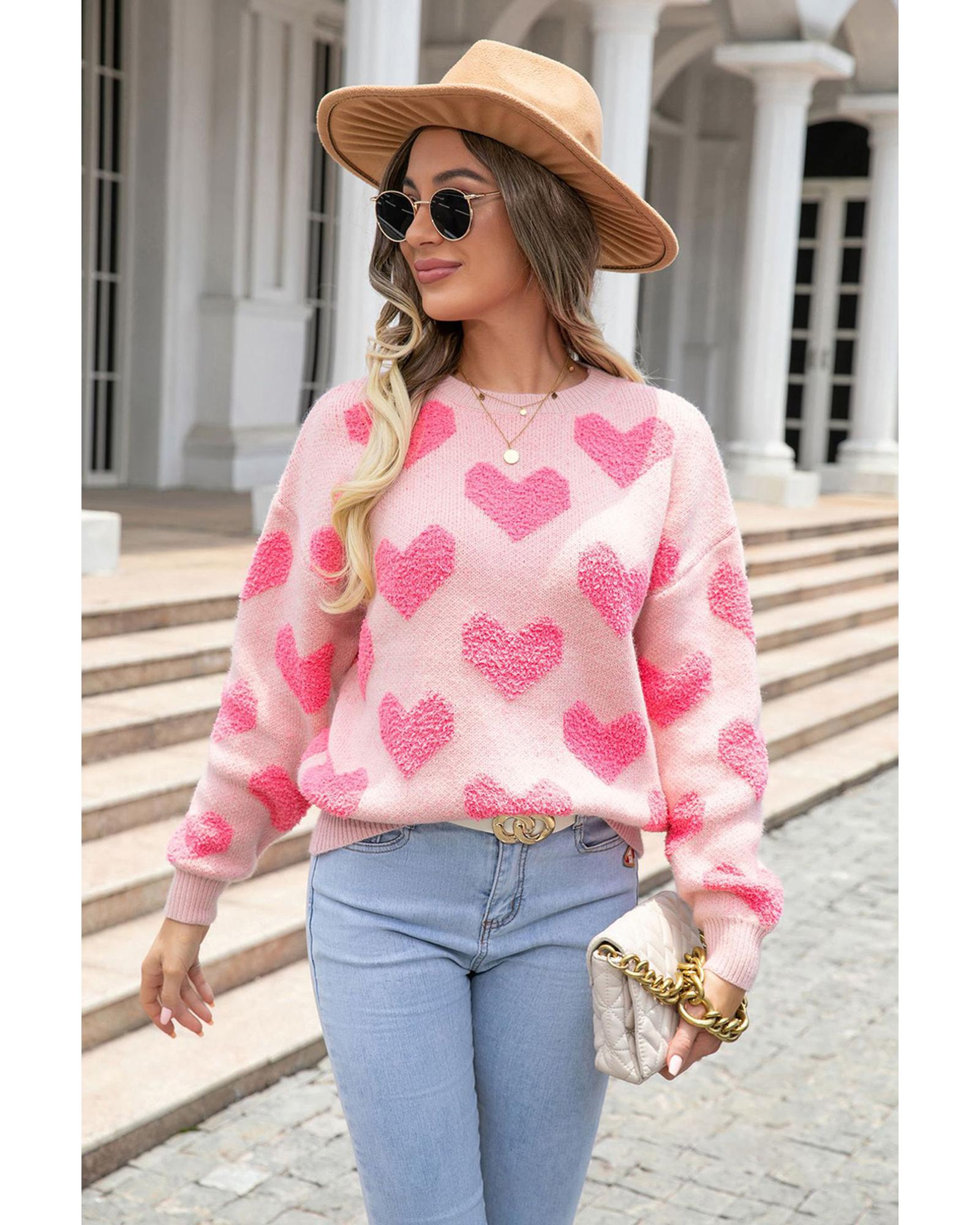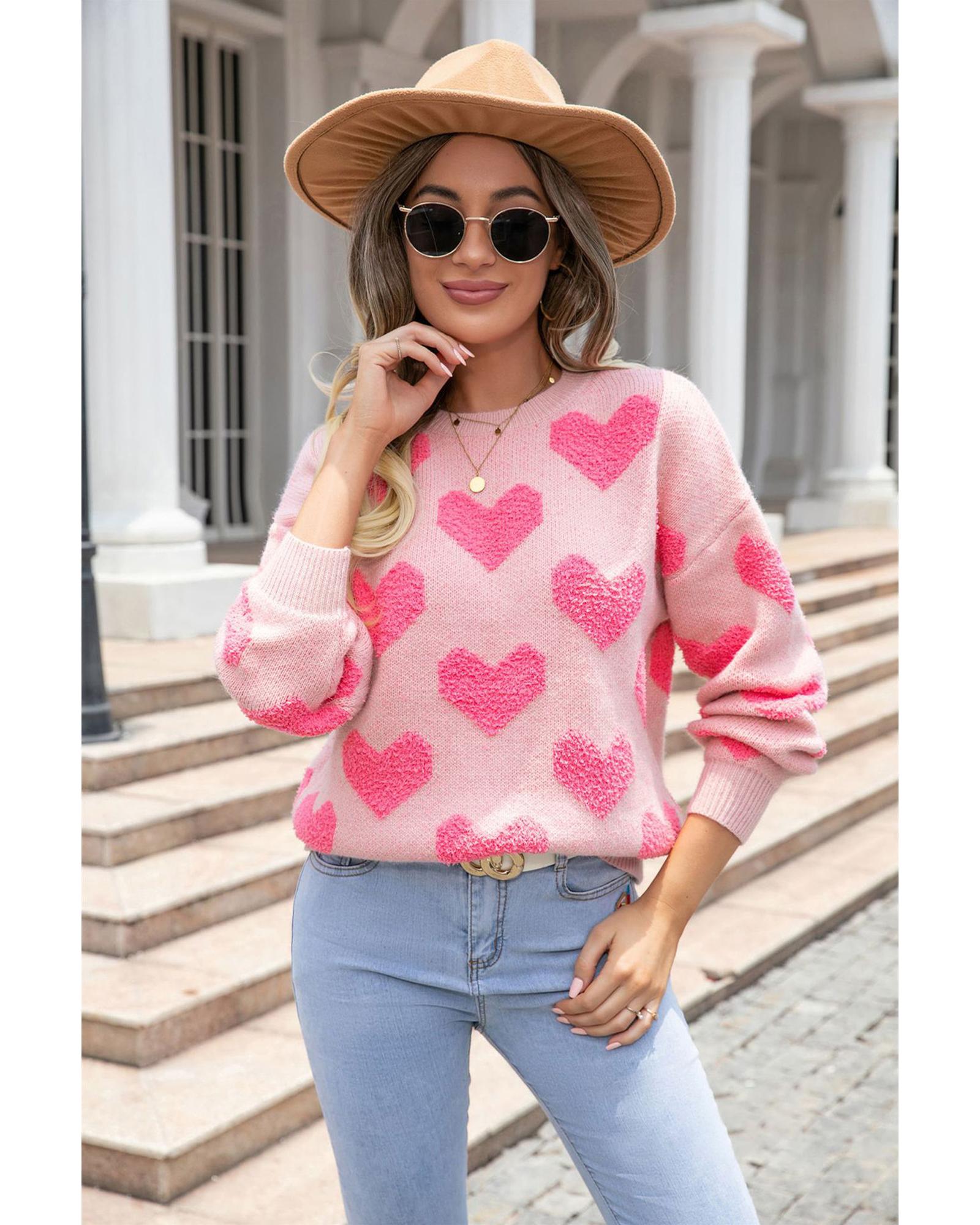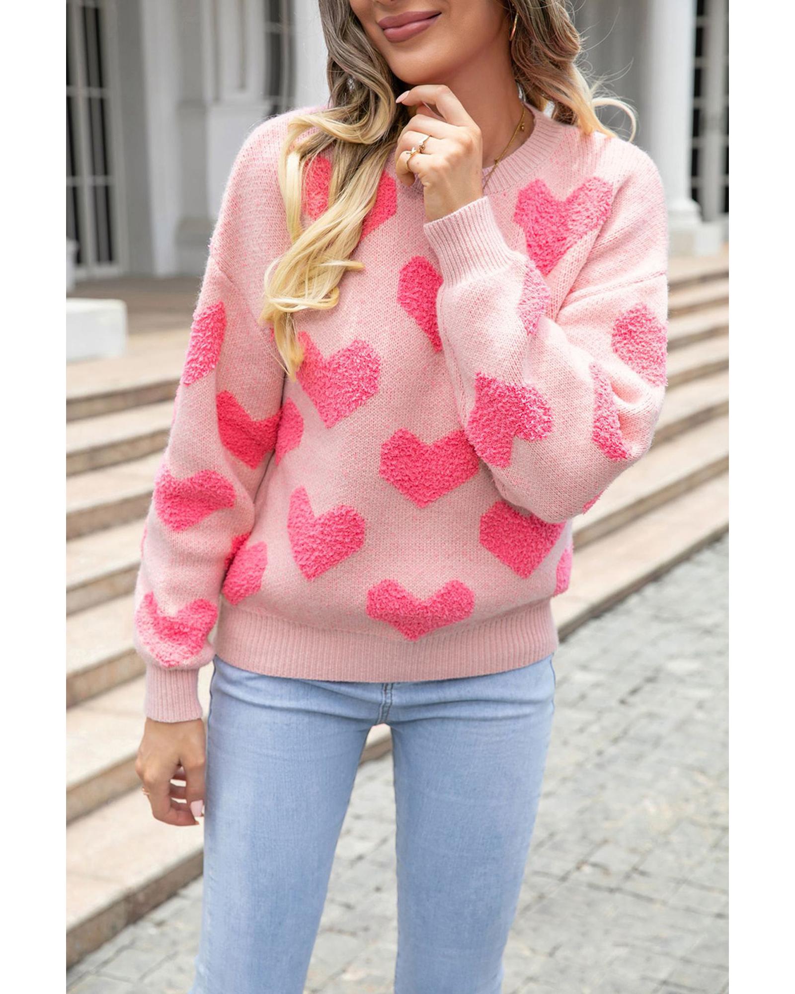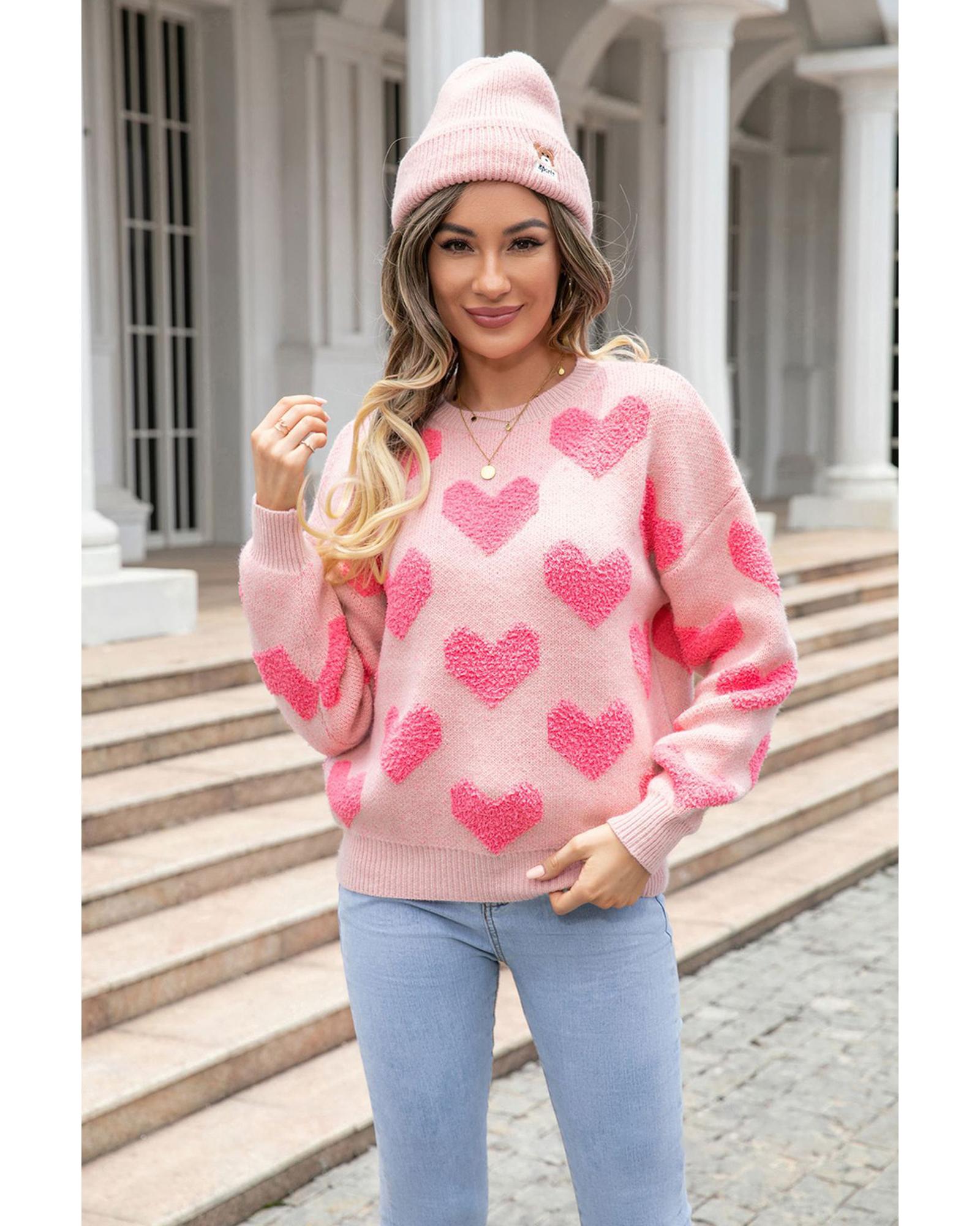 - Light Pink Valentine’s Day Heart Jacquard Knit Sweater
