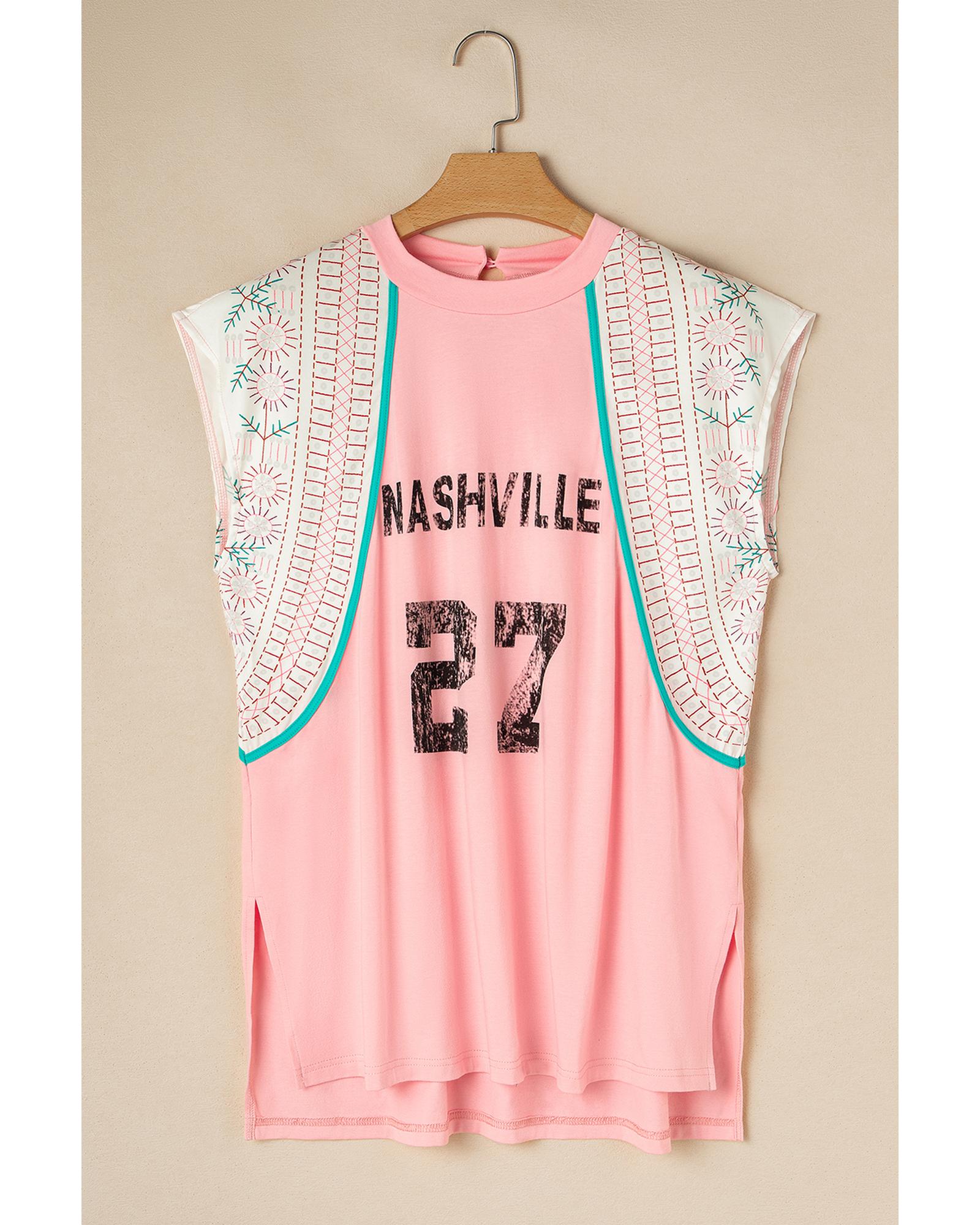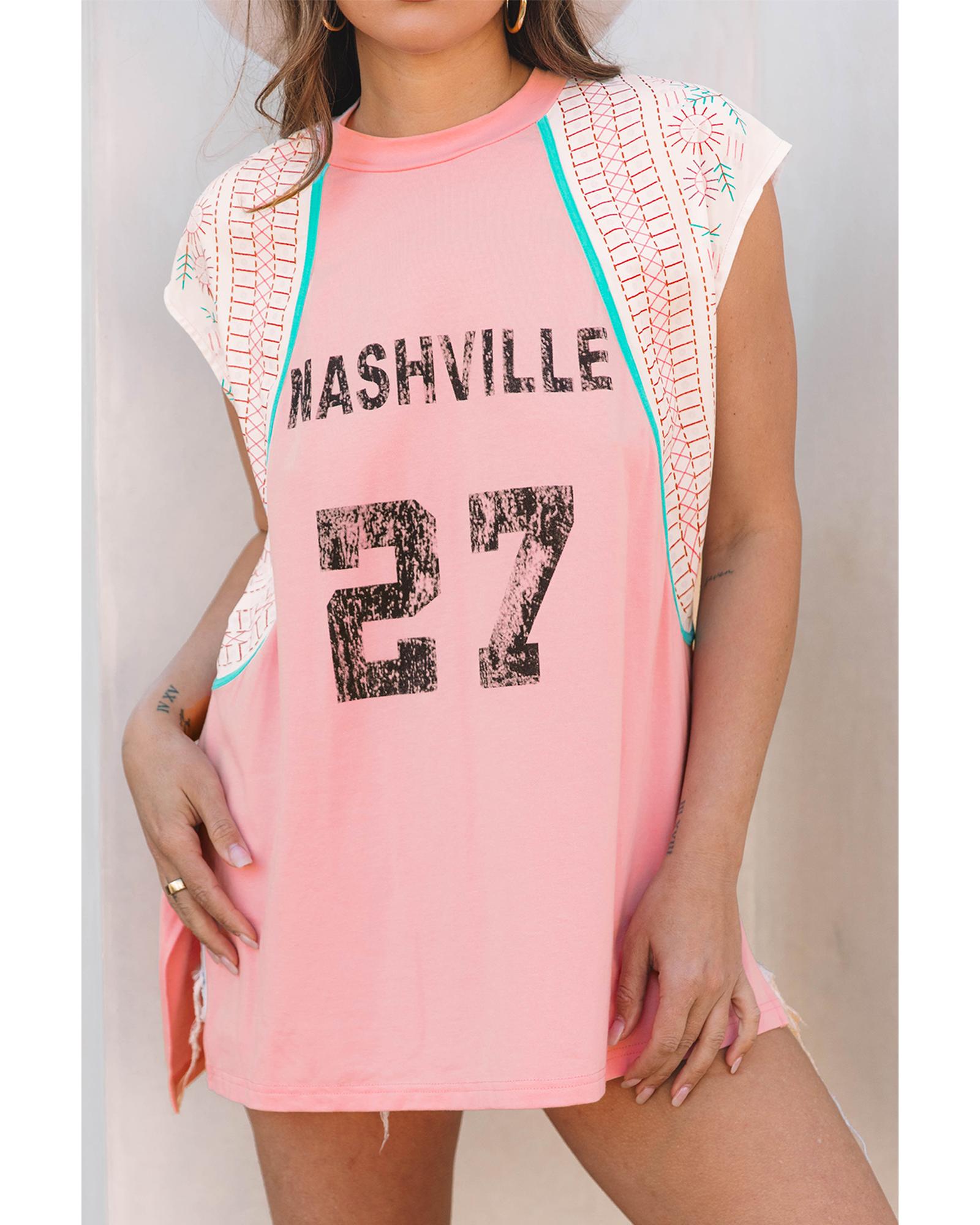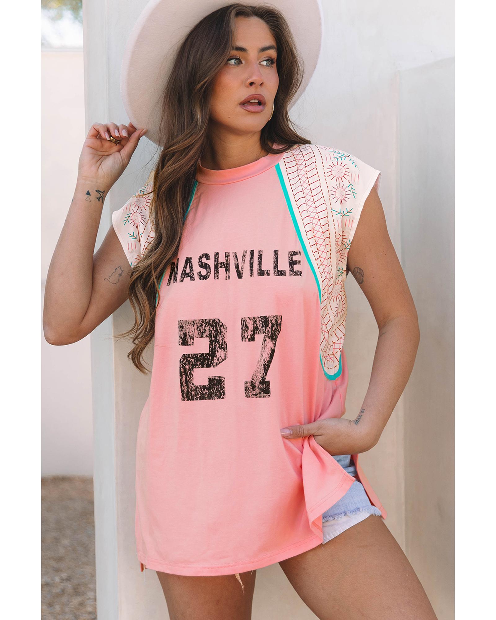 • Light Pink Vintage Nashville Printed Patchwork Tank Top