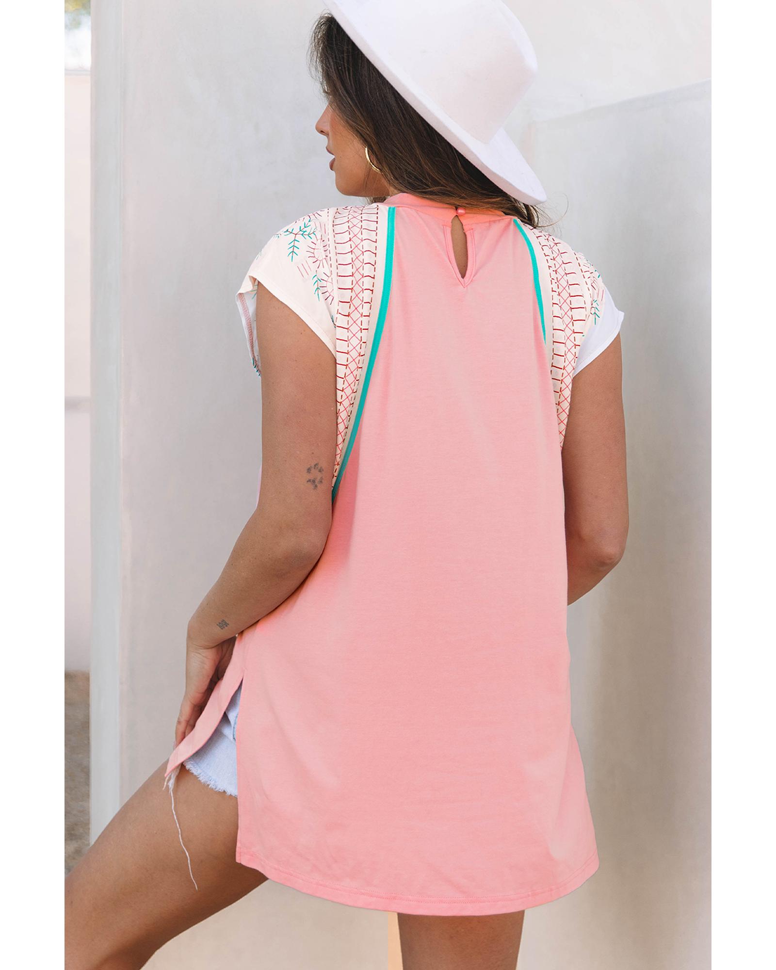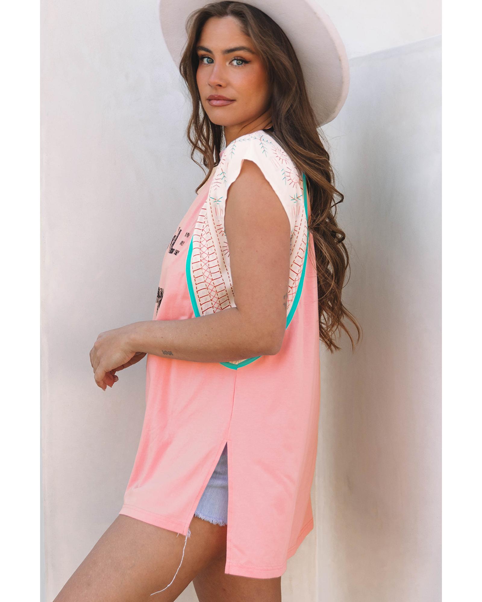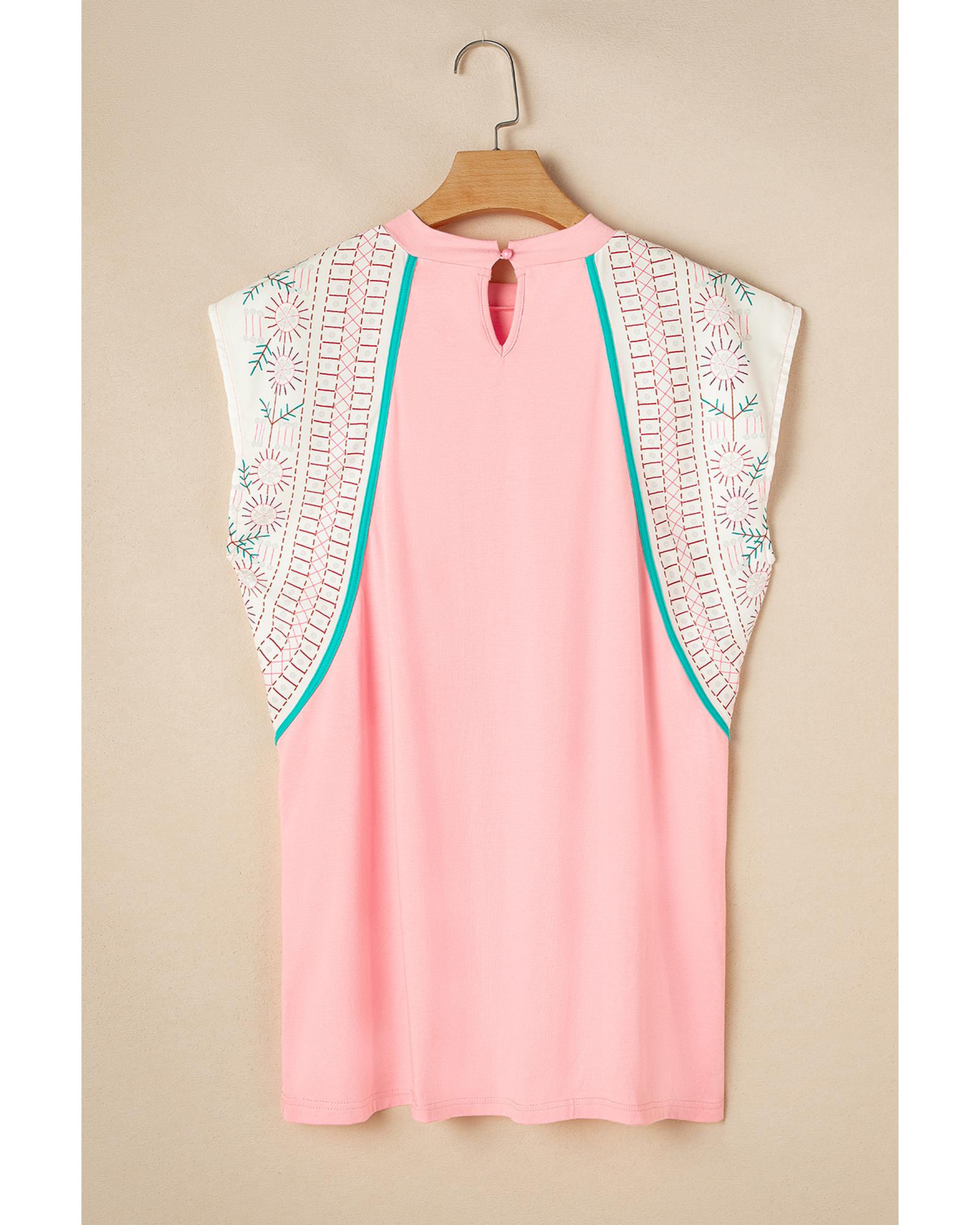 • Light Pink Vintage Nashville Printed Patchwork Tank Top
