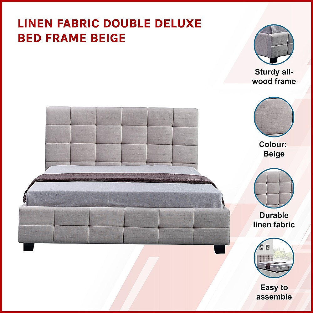 Linen Fabric Double Deluxe Bed Frame Beige