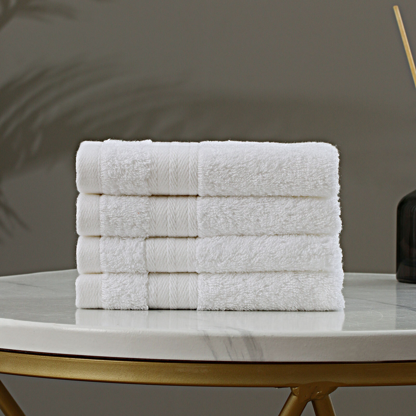 Linenland Bath Towel Set – 4 Piece Cotton Washcloths – White