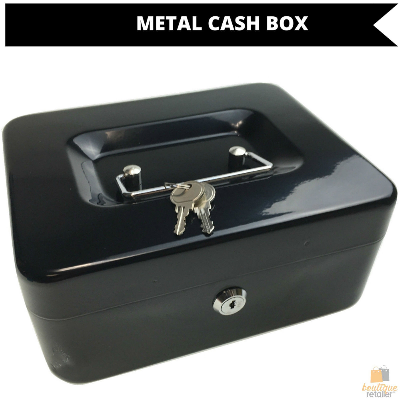 Lockable METAL CASH BOX Deposit Petty Cash Slot Money Safe Portable 2 Keys New