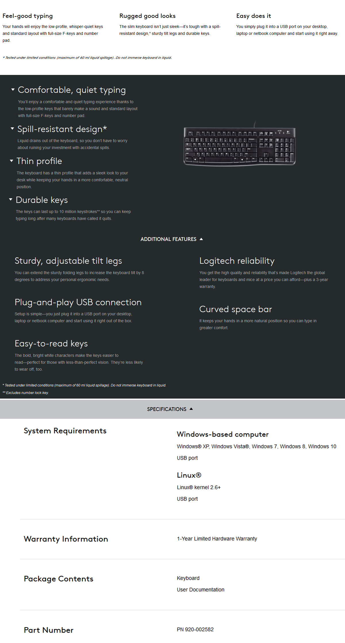 1 x 920-002582: Logitech K120 USB Keyboard