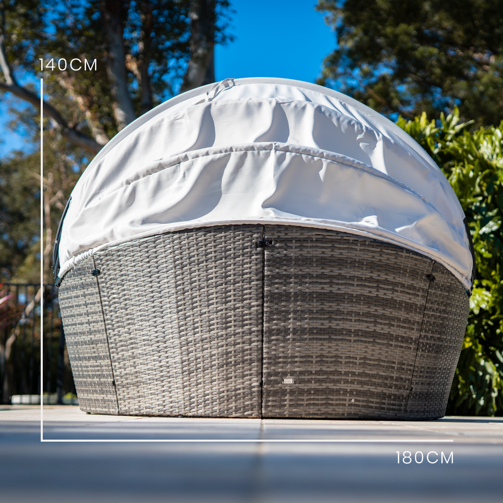 - Colour: Grey weave, off white cushions and canopy