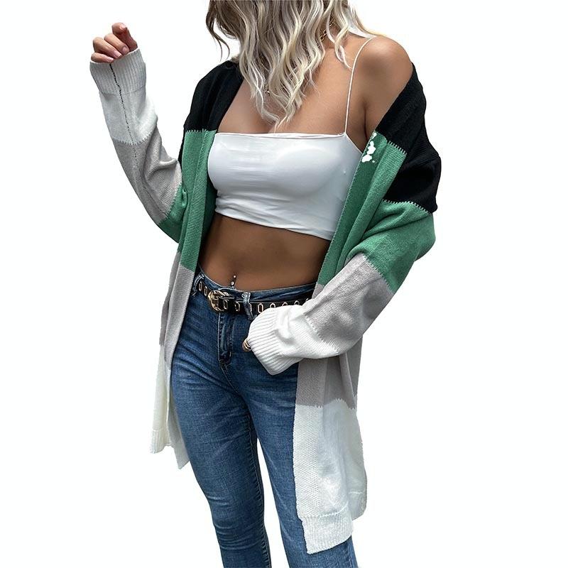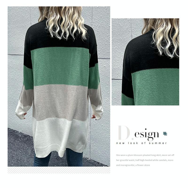 Long Cardigan Open Front Colour Block Cardigan Knit Sweaters Green - S Original price was: $125.99.Current price is: $67.99.