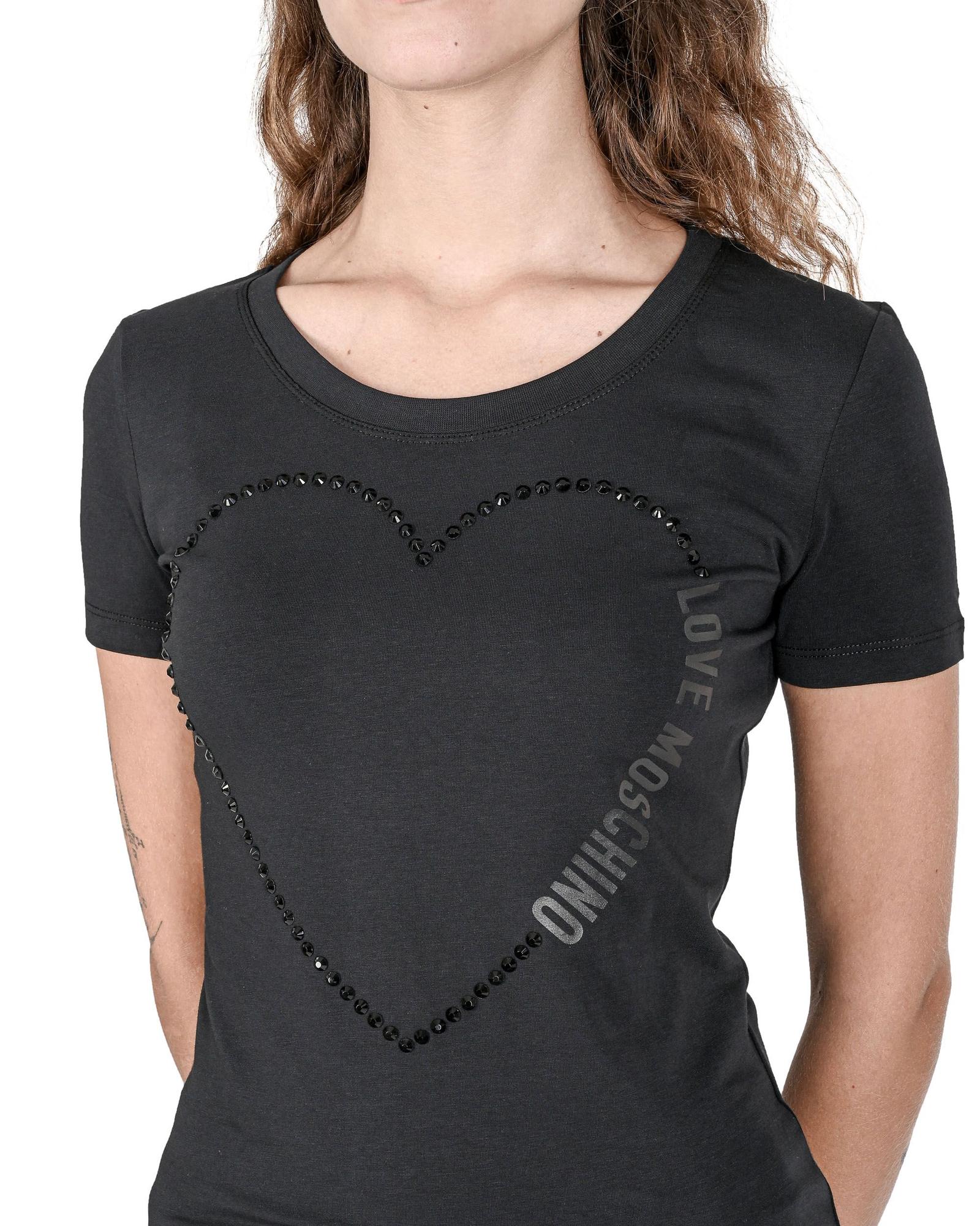 Love Moschino Women’s Heart Embellished T-Shirt – Black – 44 IT