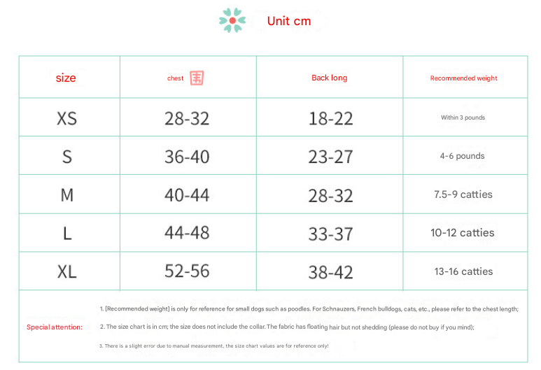 Please measure your pet and refer to the size chart in the details image to ensure the perfect fit. Sizes vary by breed and weight, so we recommend checking carefully before purchase.